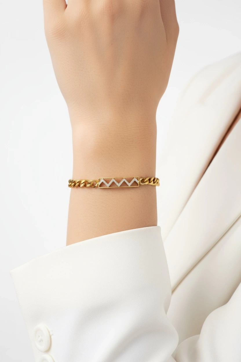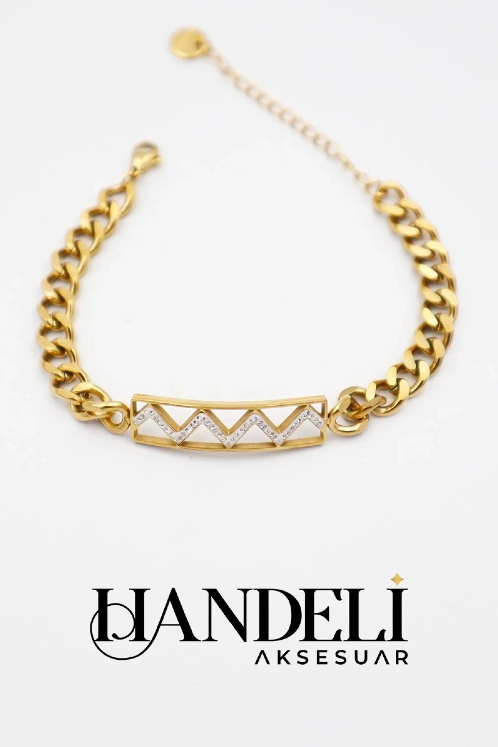 Düz Zincir Dalga Model Gold Altın Kaplama Bileklik