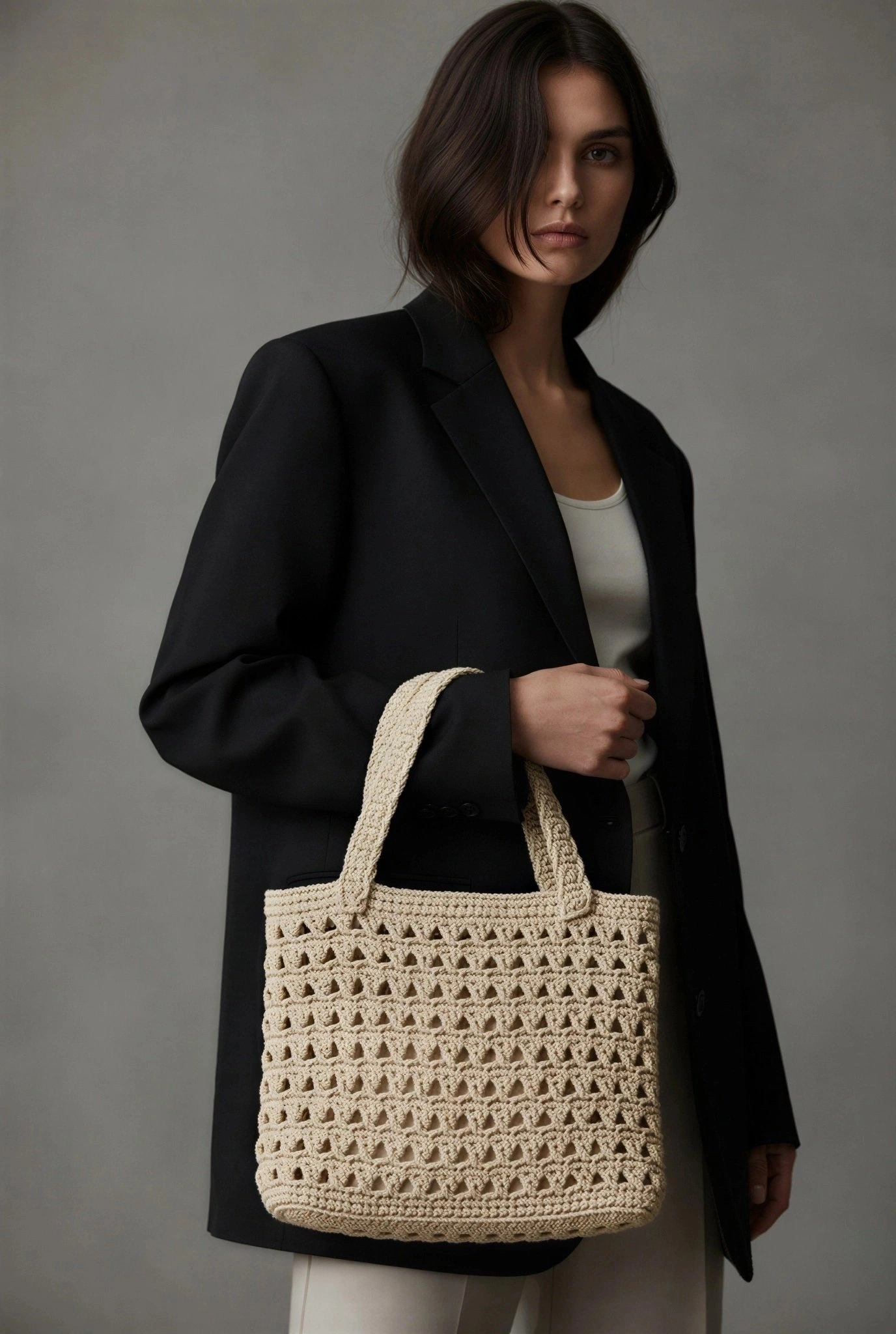 El Yapımı Hasır Model Bej Renk Kadın Kol Çantası