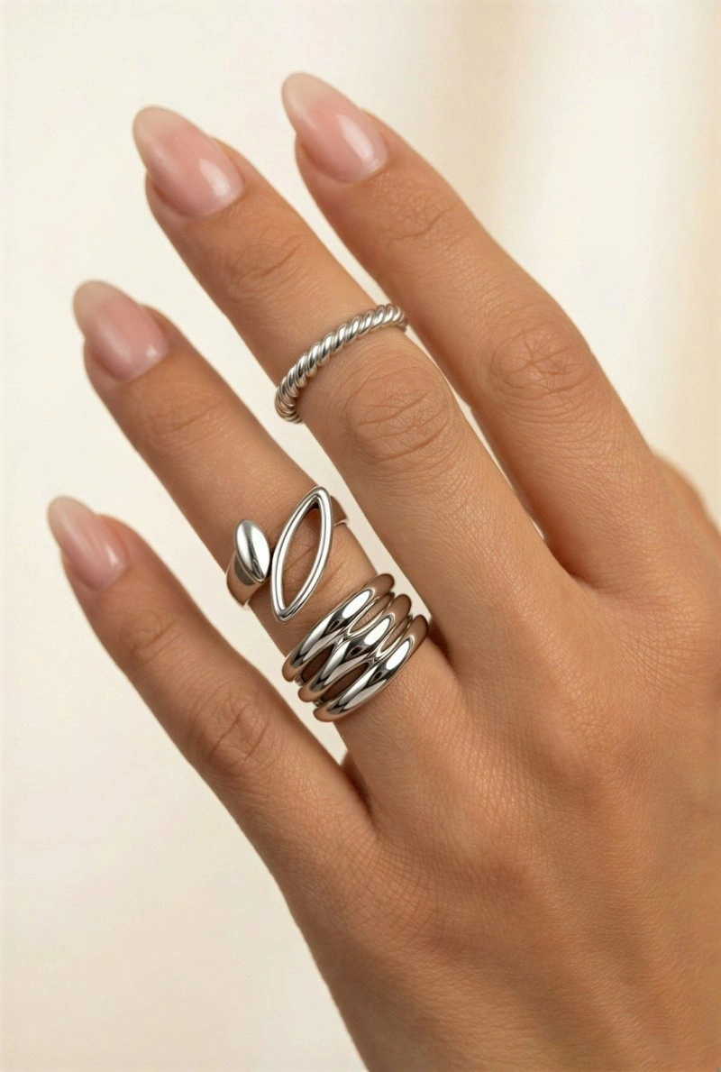 Elips Model Beyaz Altın Kaplama Kombin Yüzük