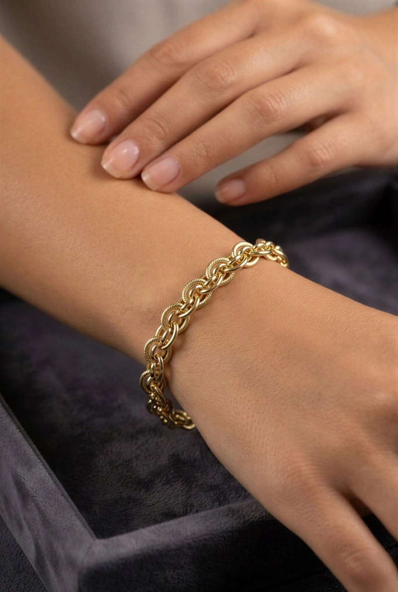 Elips Model Geçiş Detay Gold Altın Kaplama Bileklik