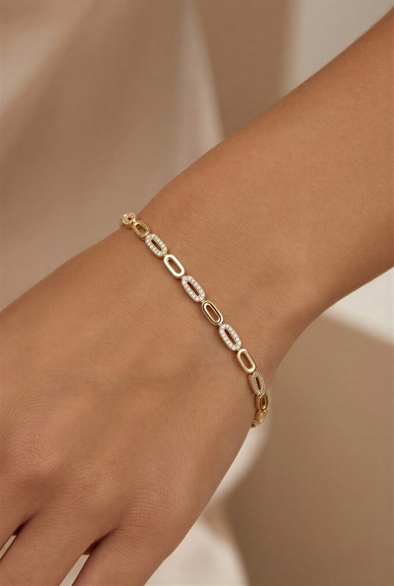 Elips Model Taş Detay Gold Altın Kaplama Bileklik