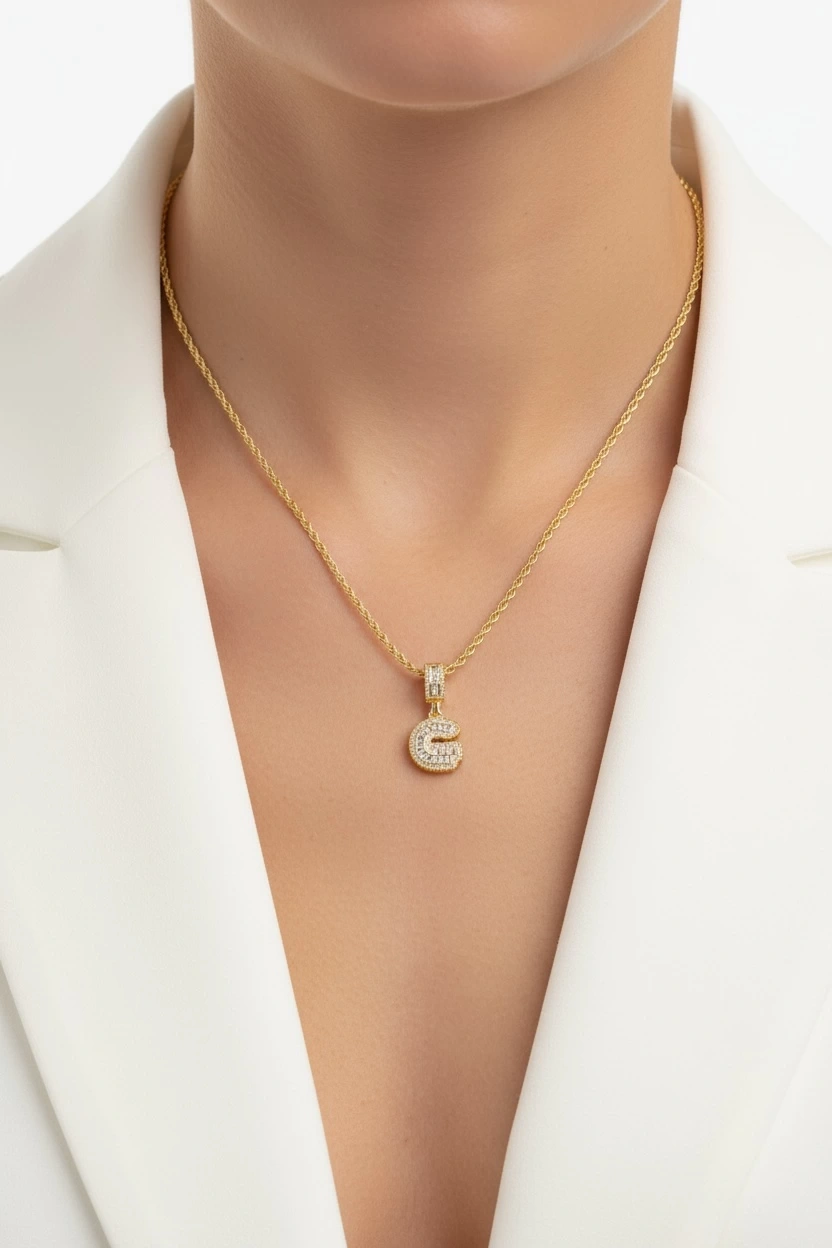 G Harf Taşlı Burgu Gold Altın Kaplama Çelik Kolye