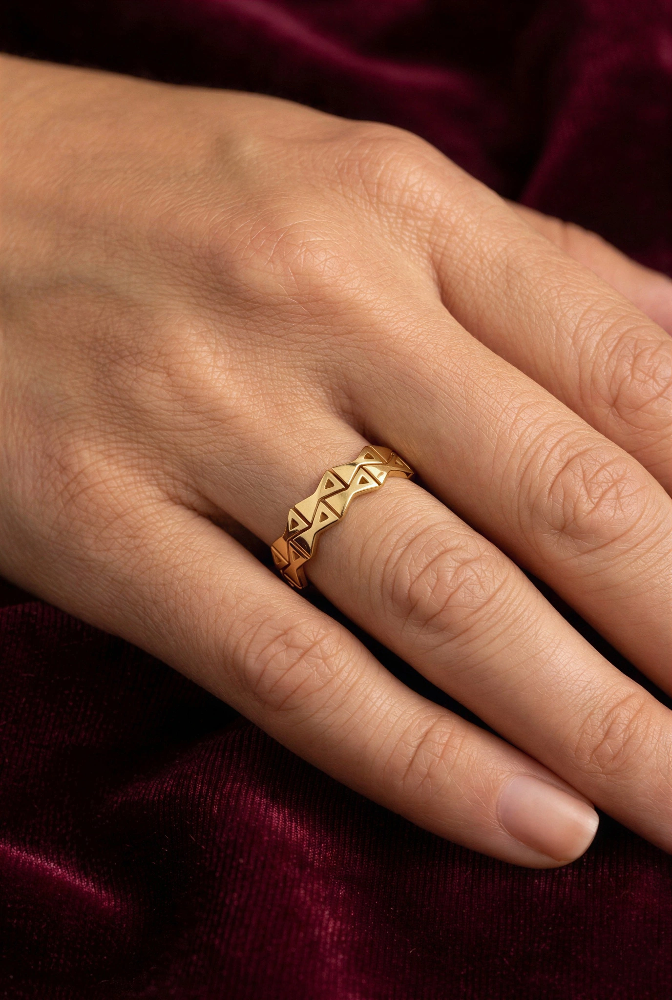 Geçme Üçgen Gold Altın Kaplama Çelik Yüzük