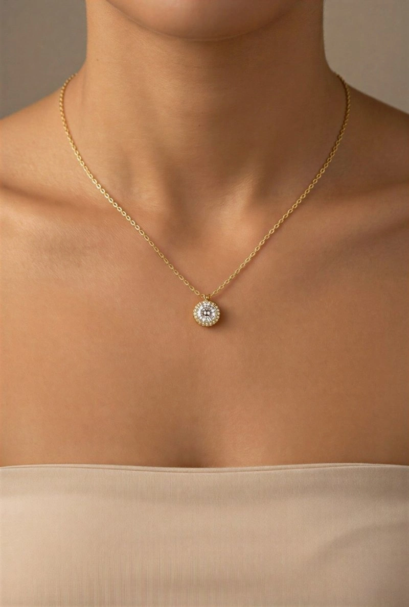 Halka Elmas Model Zarif Gold Altın Kaplama Kolye