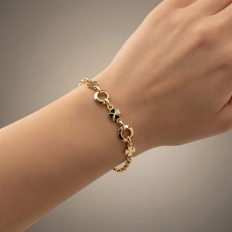 Halka Model Yonca Detay Gold Altın Kaplama Bileklik