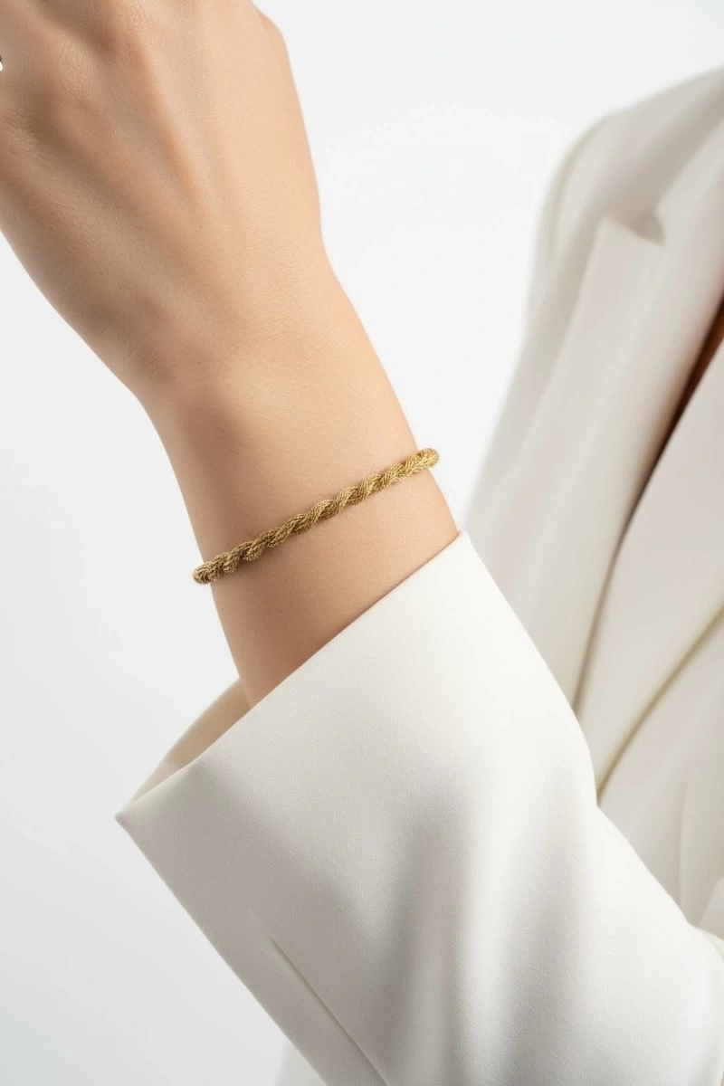 Hasır Burgu Model Gold Altın Kaplama Çelik Bileklik