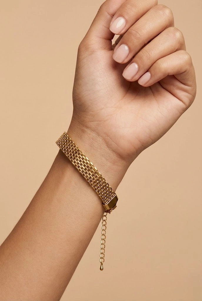 Hasır Geçme Model Gold Altın Kaplama Çelik Bileklik