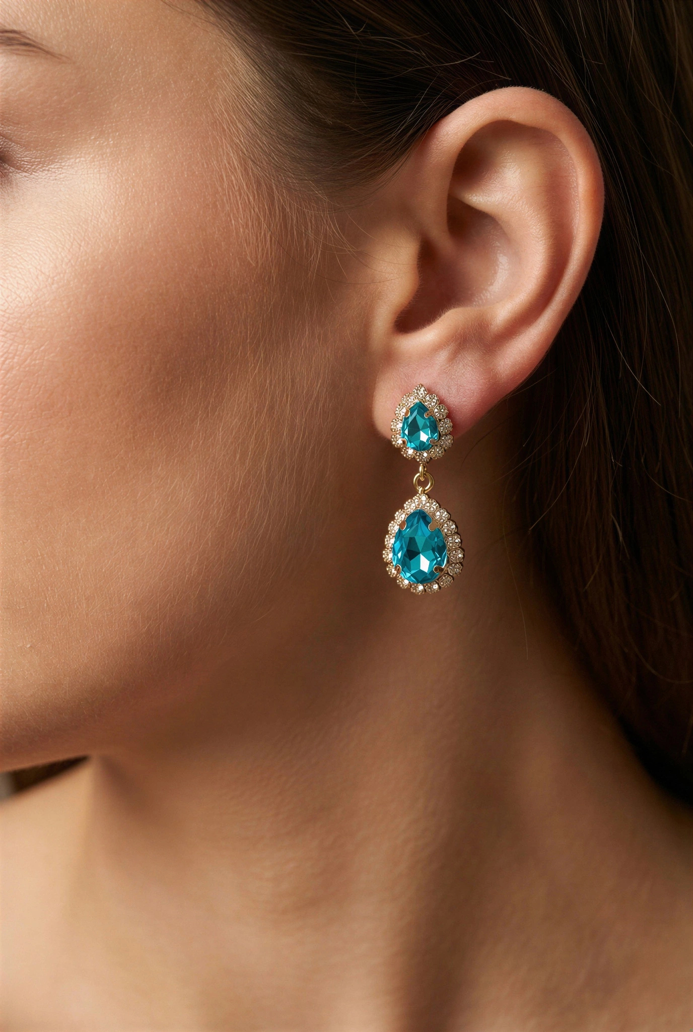 Hürrem Serisi Turkuaz Zümrüt Gold Altın Kaplama Küpe