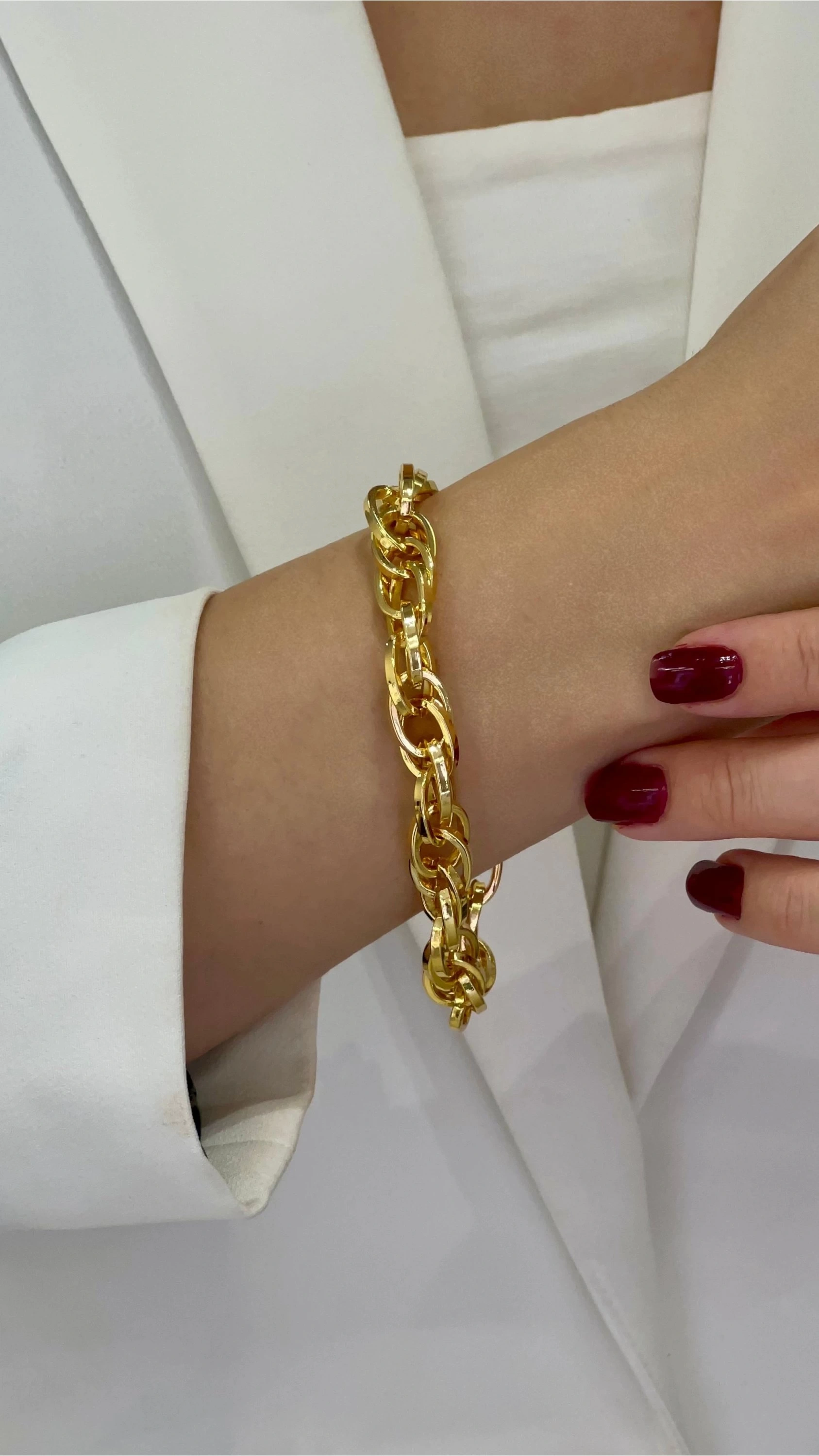 İç İçe Geçme Kuyum Model Gold Altın Kaplama Bileklik ile tarzınıza şıklık katın ve göz alıcı bir görünüme sahip olun.