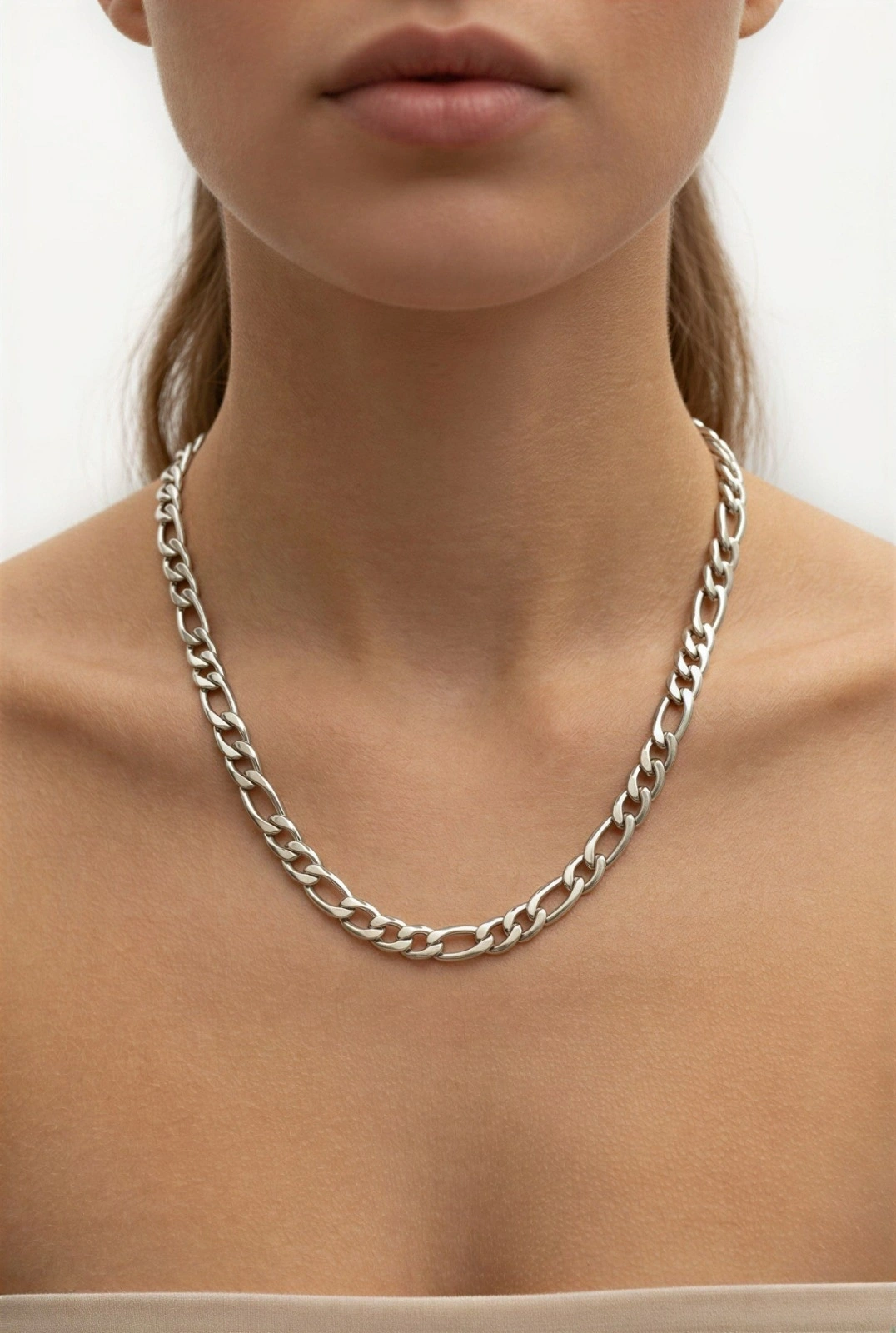 Kalın Ezik Bağlı Beyaz Altın Kaplama Çelik Kolye