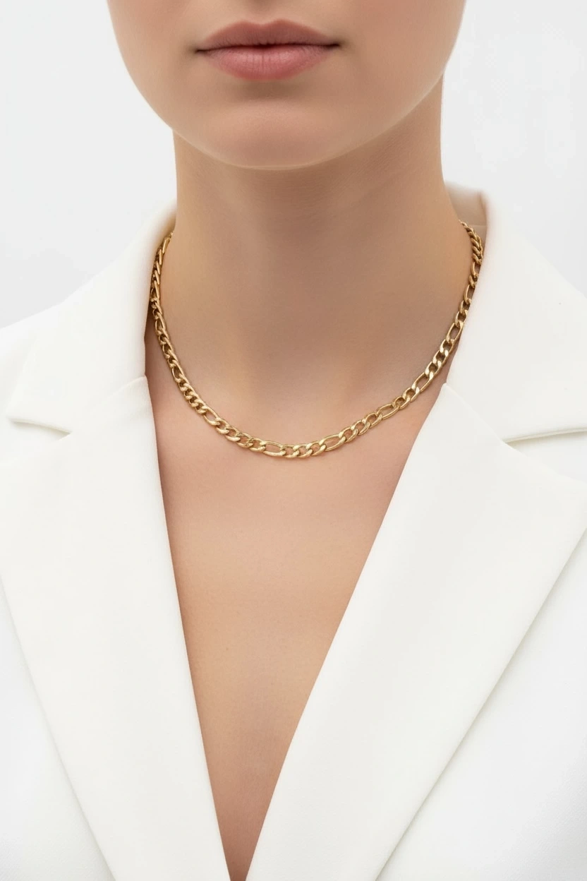 İnce Ezik Bağlı Gold Altın Kaplama Çelik Kolye