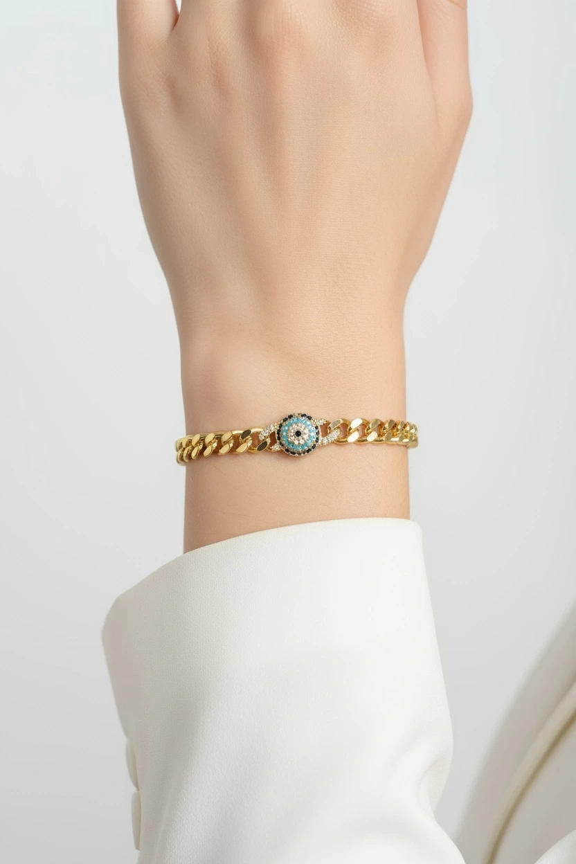 İnce Ezik Bağlı Model Göz Detay Gold Altın Kaplama Bileklik