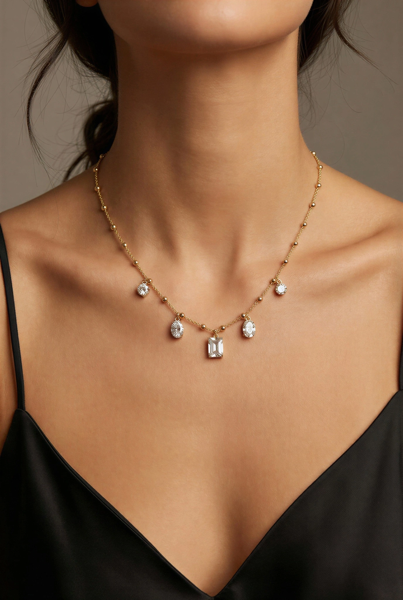 Çoklu Taş Detay Gold Altın Kaplama Kolye