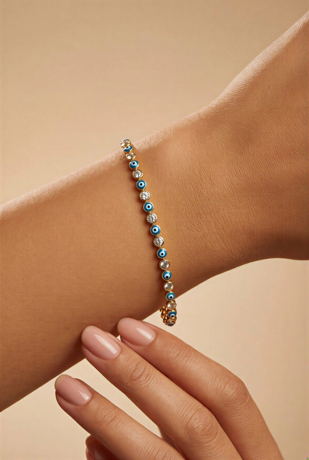 İnce Nazar Göz Taş Model Gold Altın Kaplama Bileklik
