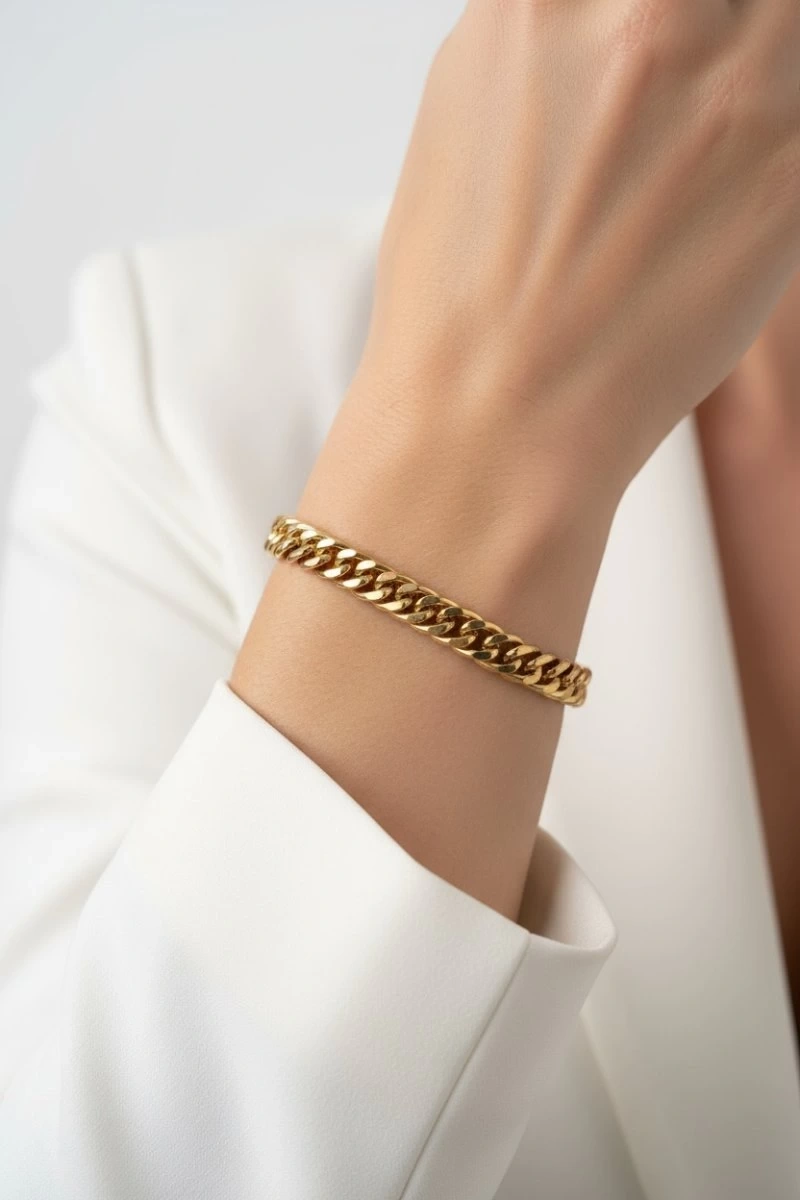 İnce Sık Geçiş Detay Gold Altın Kaplama Çelik Bileklik