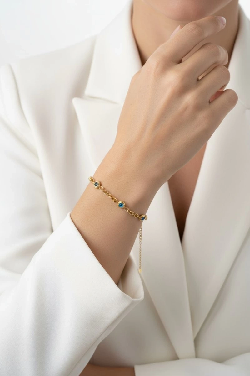 İnce Zincir Göz Detay Gold Altın Kaplama Çelik Bileklik