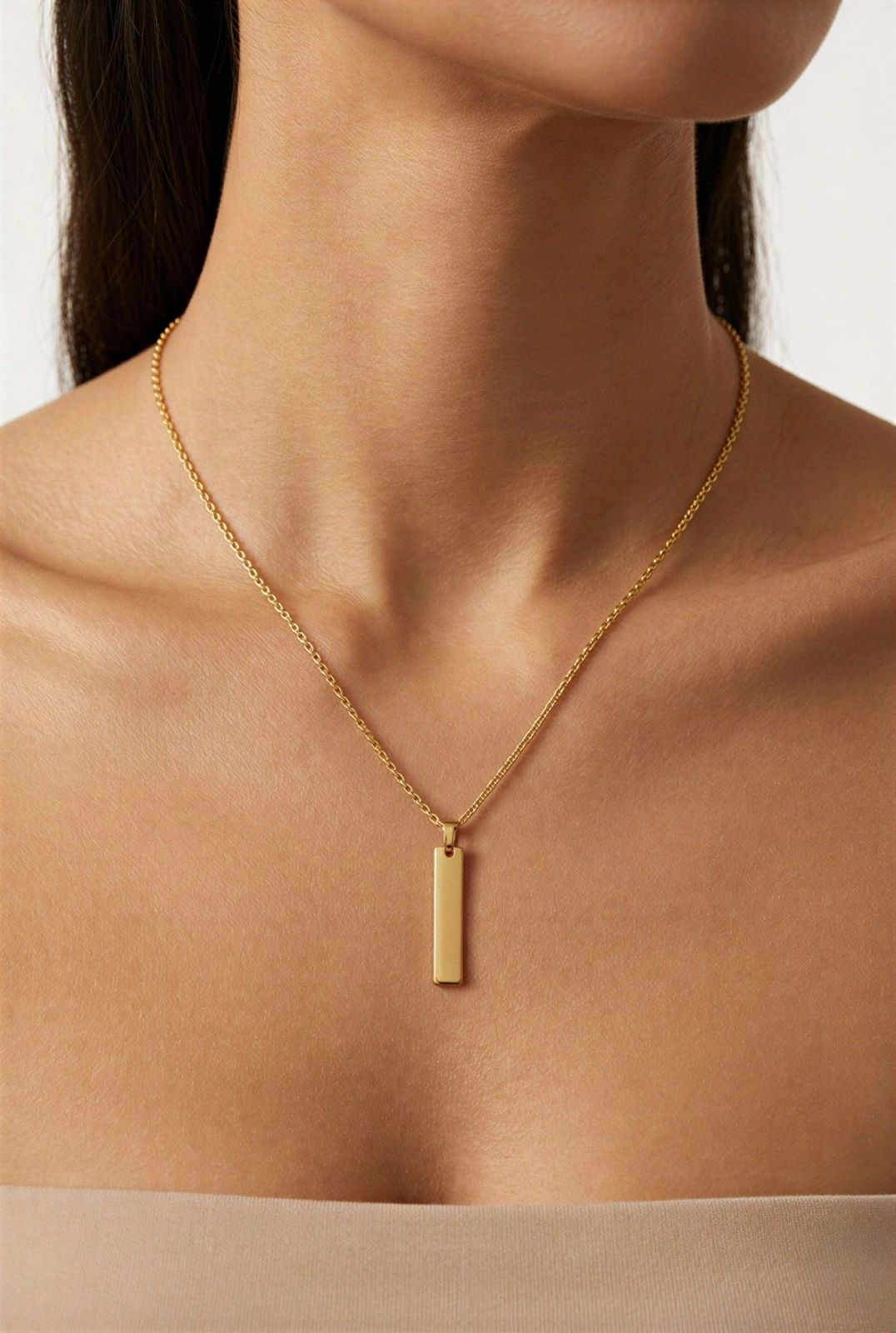 İnce Zincir Uzun Plaka Detay Gold Altın Kaplama Kolye