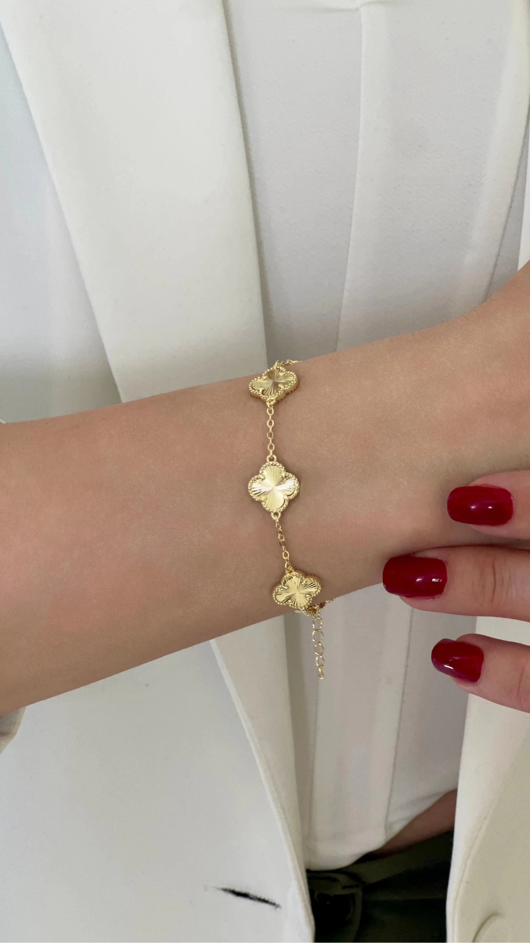 Işıl Simli Yonca Gold Altın Kaplama Bileklik
