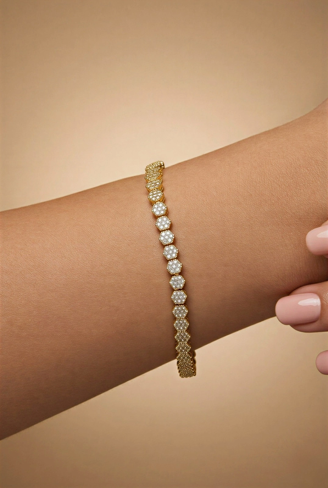 Işıl Taşlı Petek Model Gold Altın Kaplama Bileklik