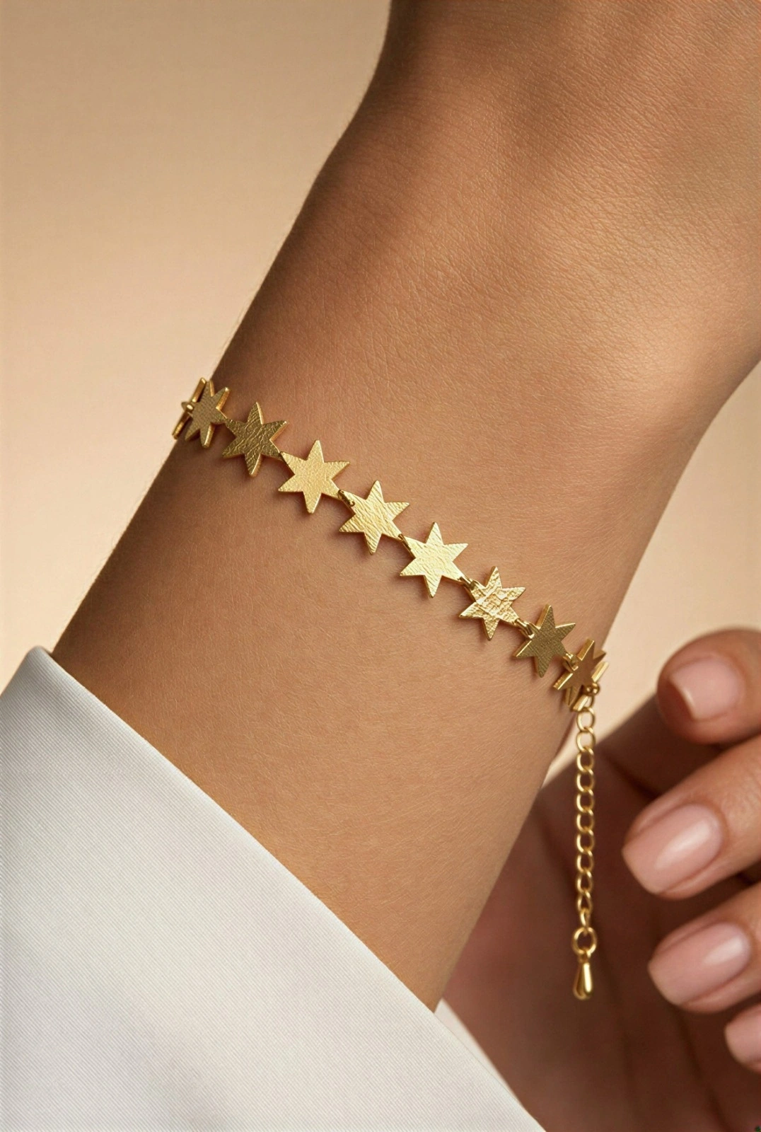 Işıltı Model Sıralı Yıldız Detay Gold Altın Kaplama Bileklik