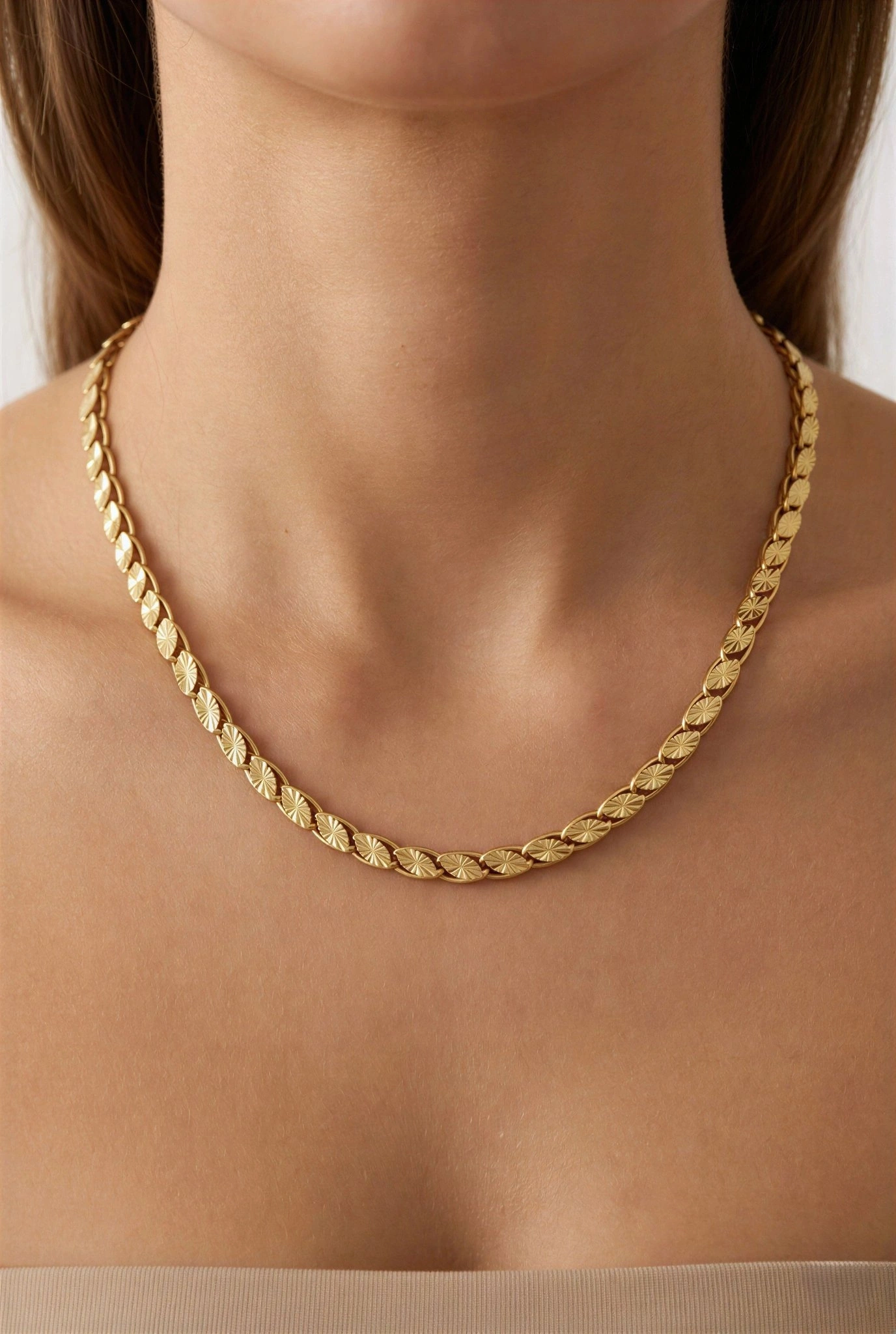 İşlemeli Arpa Model Gold Altın Kaplama Çelik Kolye