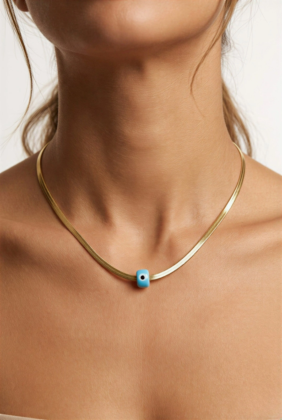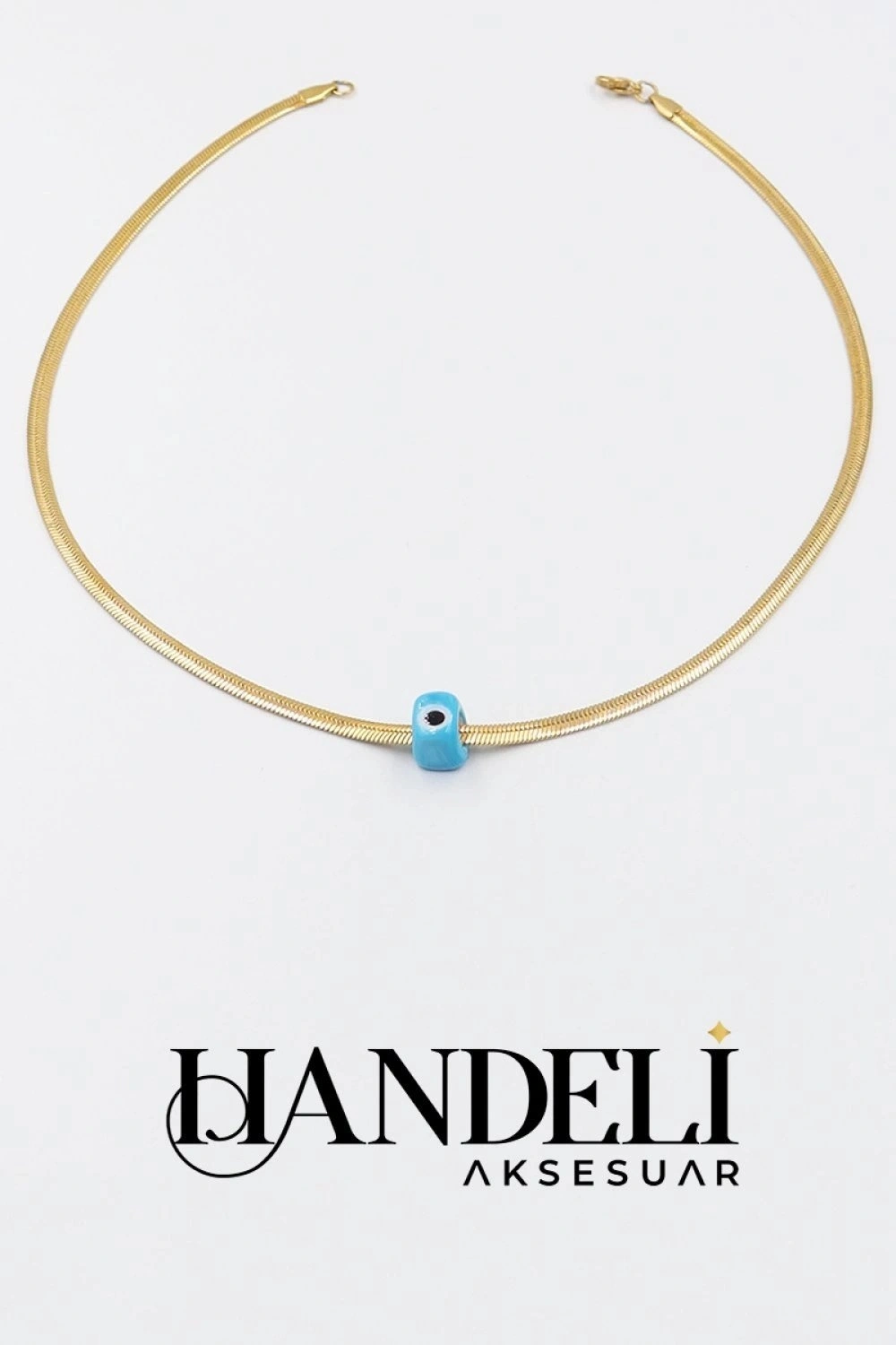 İtalyan Zincir Boncuklu Model Gold Altın Kaplama Çelik Kolye
