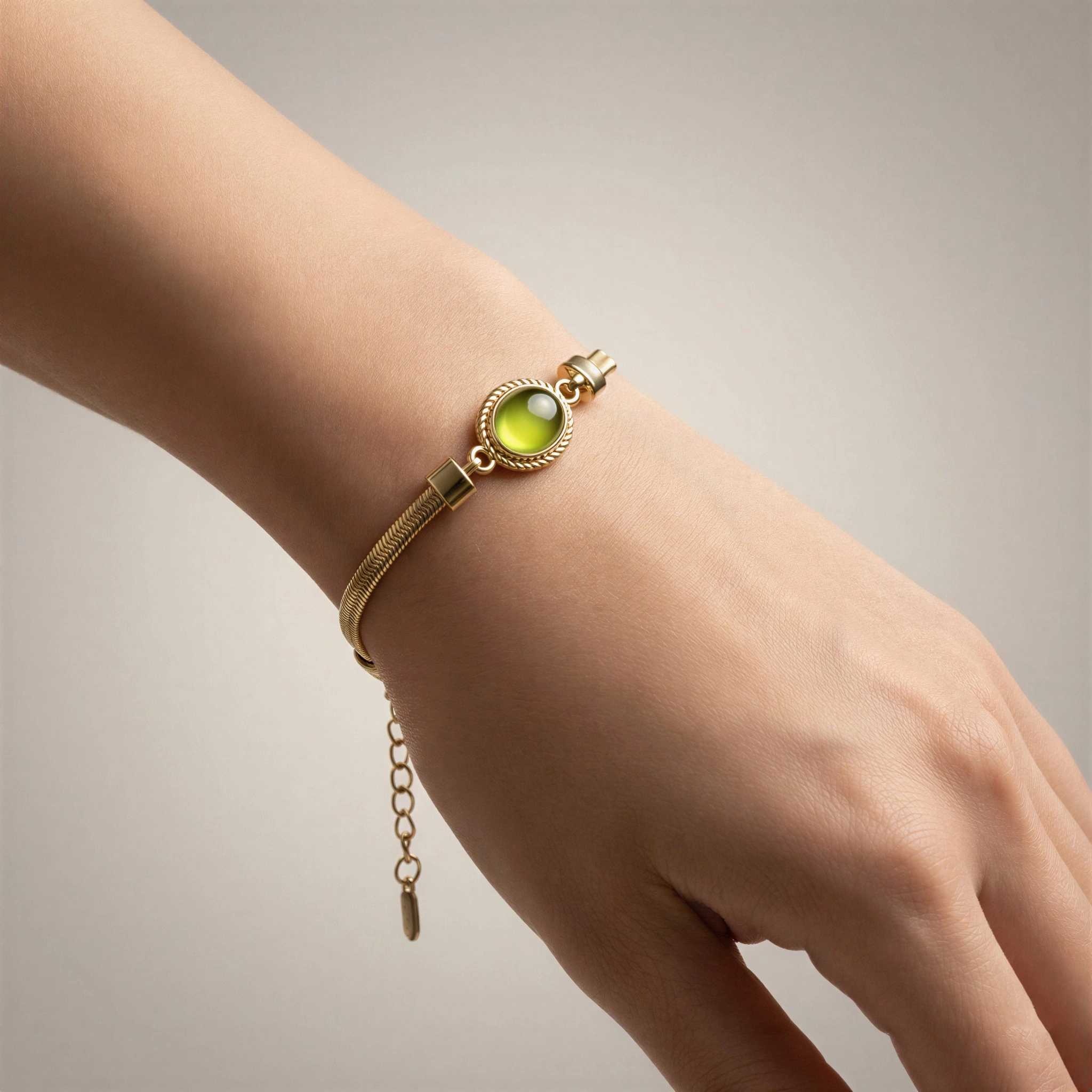 İtalyan Zincir Yeşil Renk Taş Model Gold Altın Kaplama Bileklik