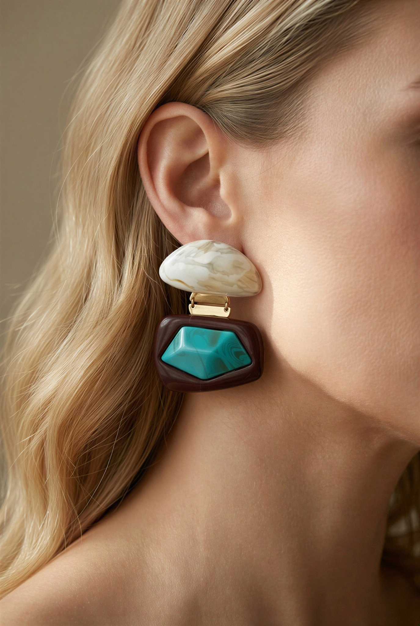 Mavi Beşgen Model Gold Altın Kaplama Küpe