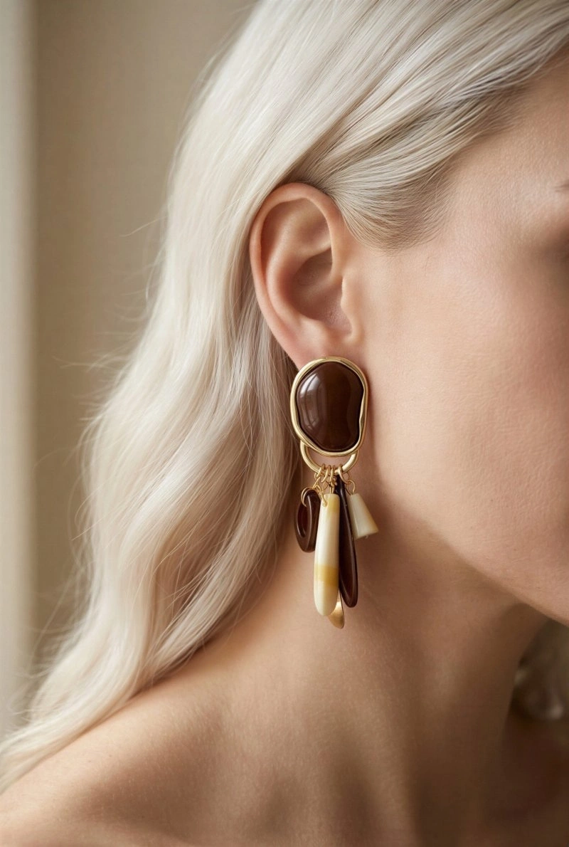 Kahverengi Sarkıt Model Gold Altın Kaplama Küpe