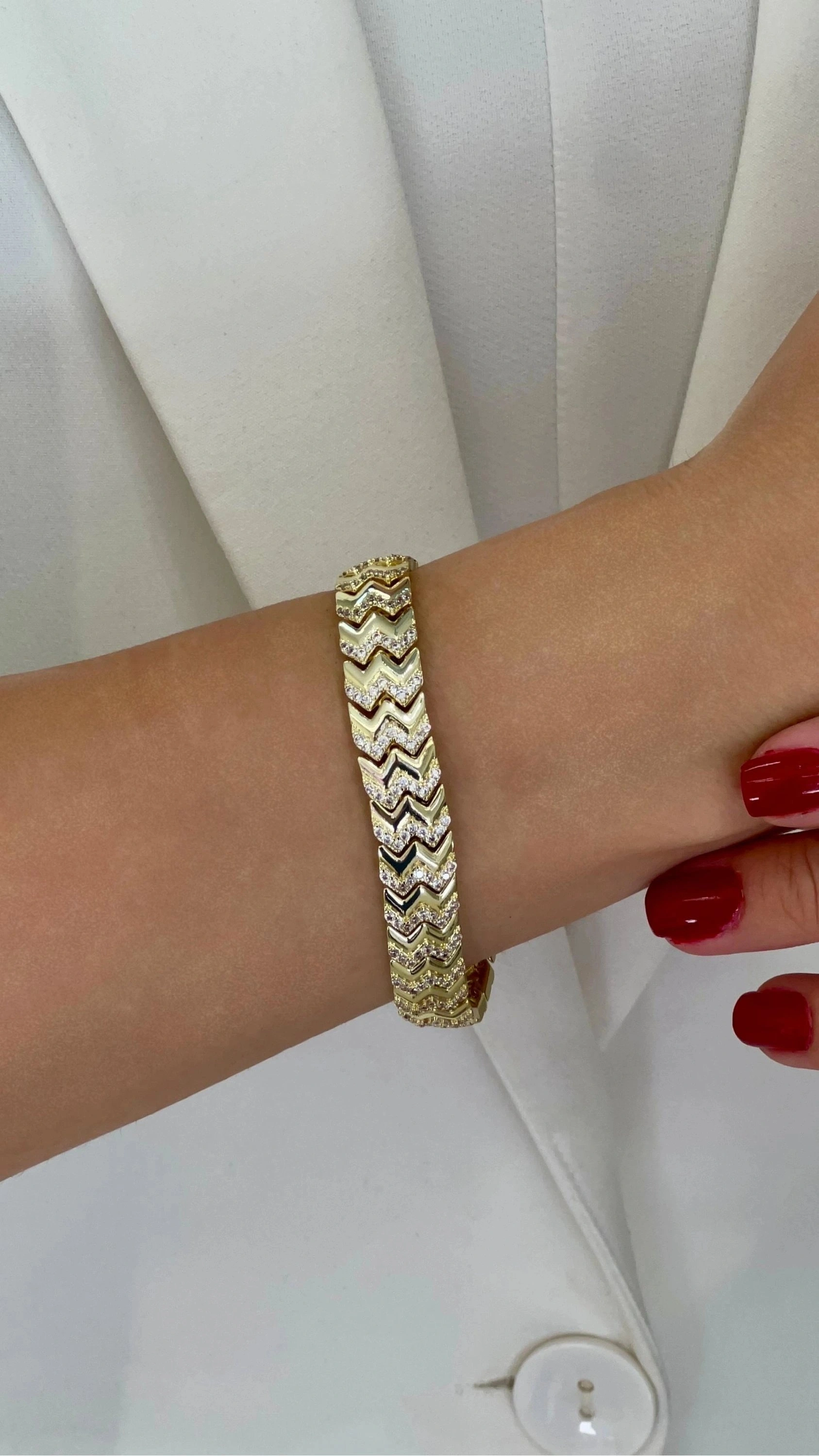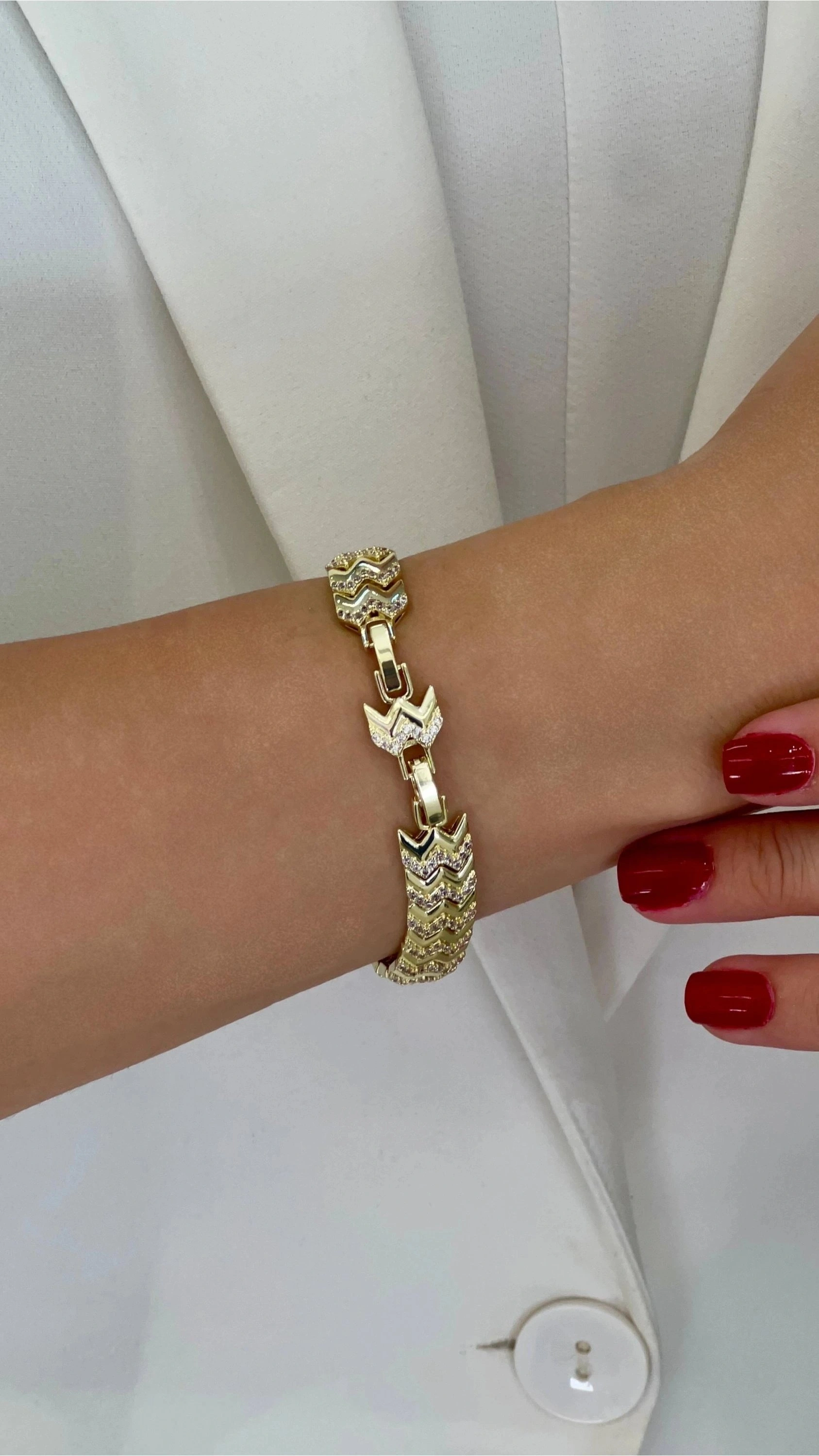 Kalın Dik Dalga Model Gold Altın Kaplama Bileklik