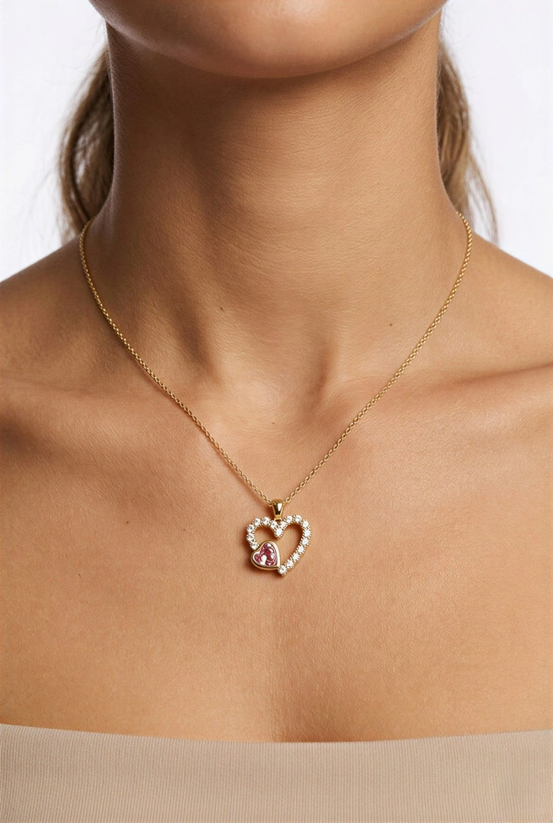 Kalp İçi Pembe Kalp Model Taş Detay Gold Altın Kaplama Kolye