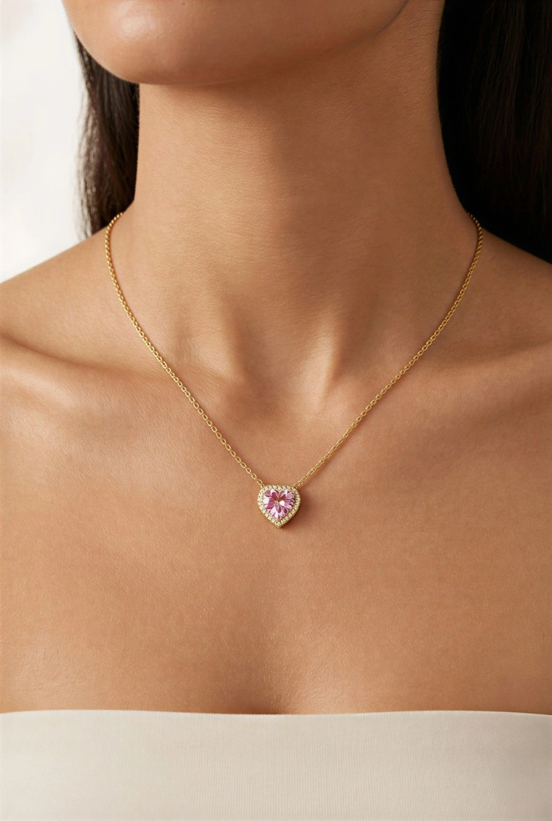 Pembe Kalp Model İnci Detay Gold Altın Kaplama Çelik Kolye