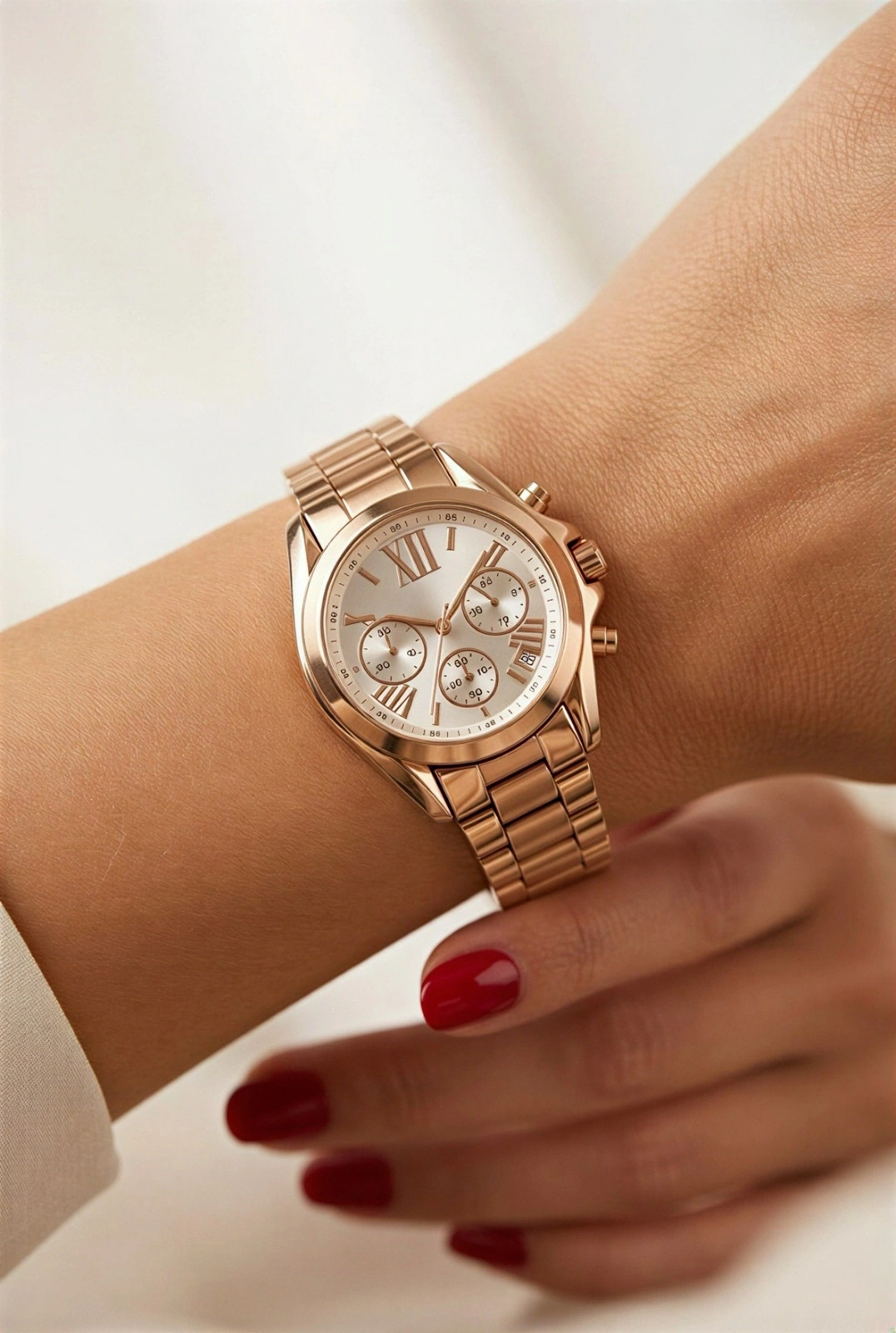 Kapalı Rose Kordon Roma Rakam Beyaz Kadran Detay Gold Kadın Kol Saati