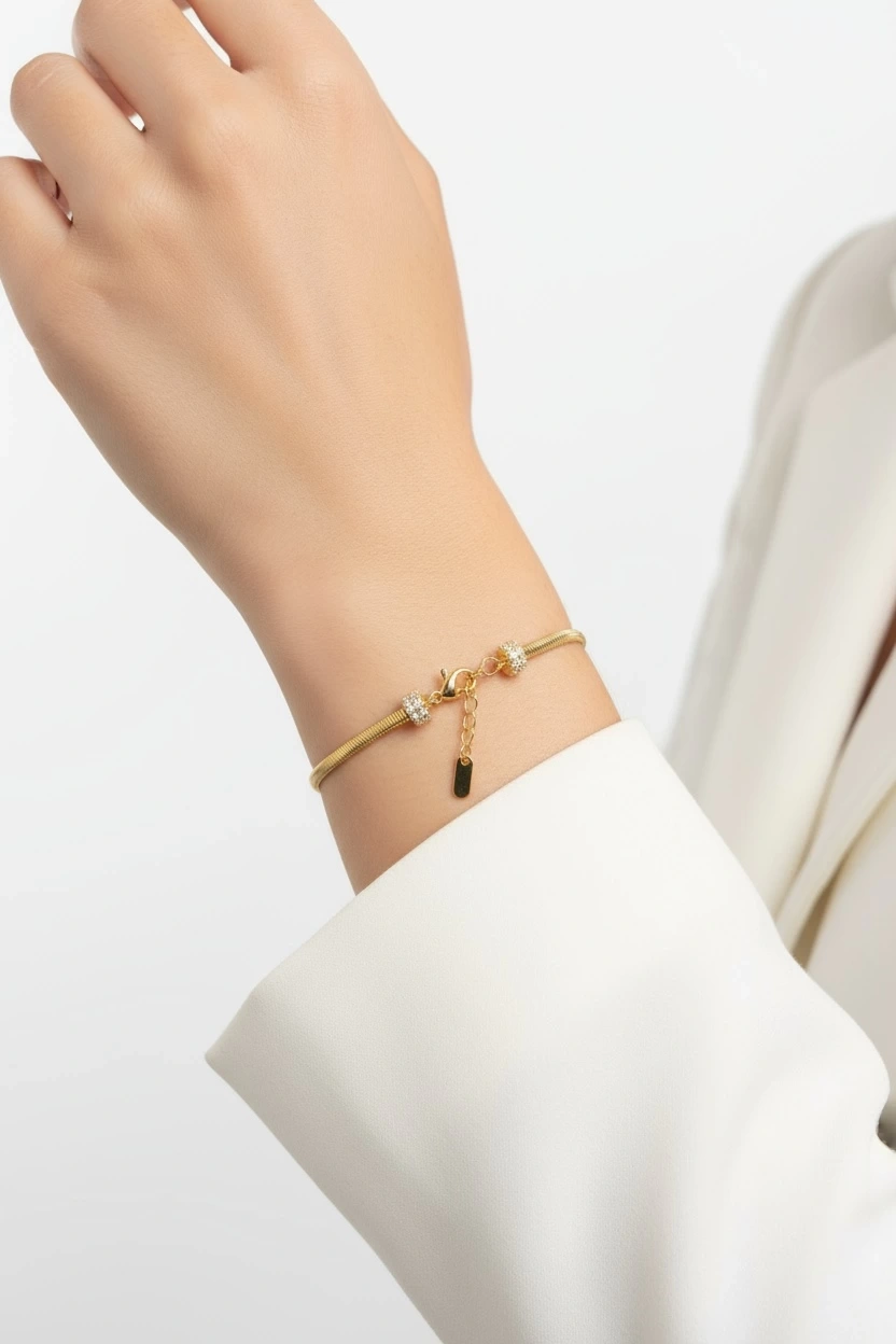 Boru Zincir Yonca Model Gold Altın Kaplama Bileklik