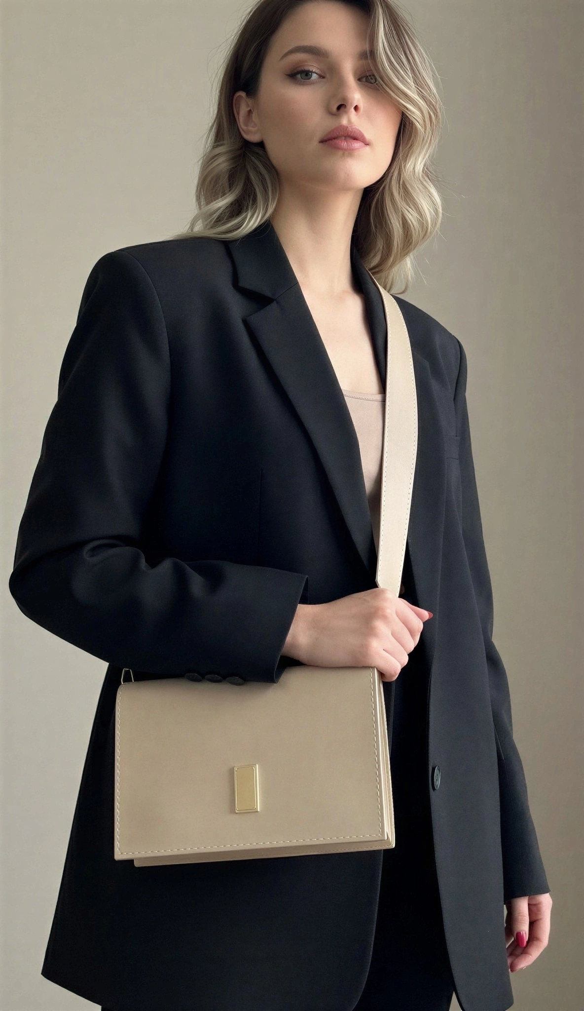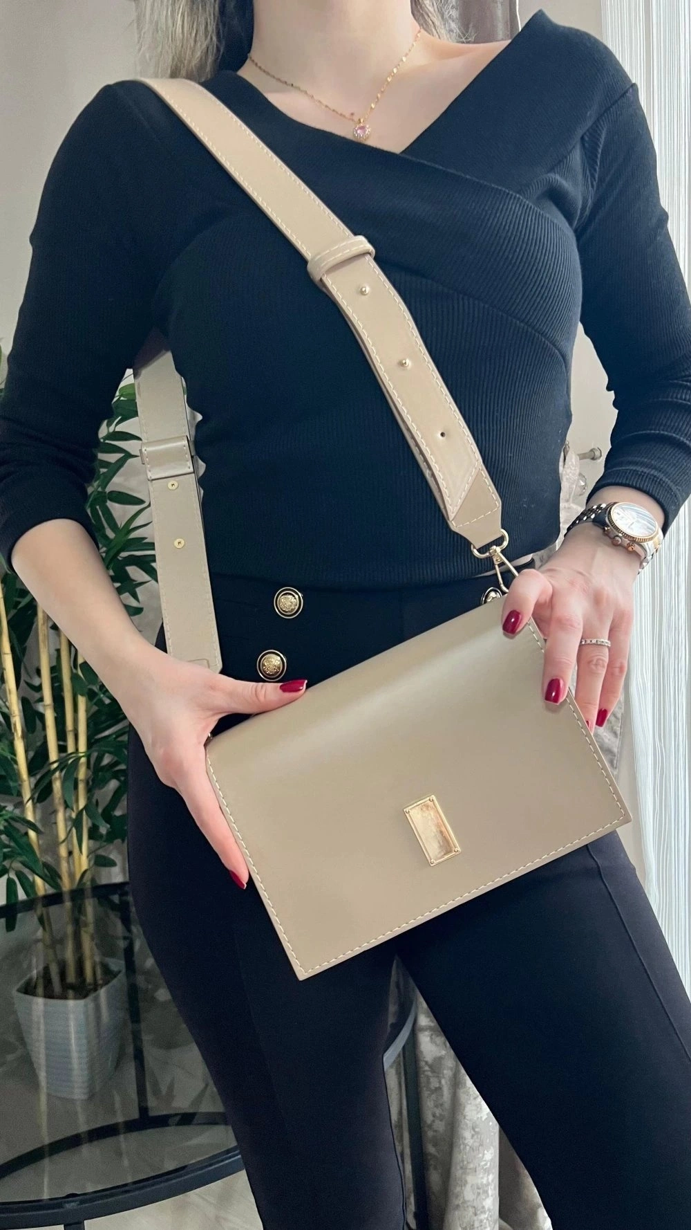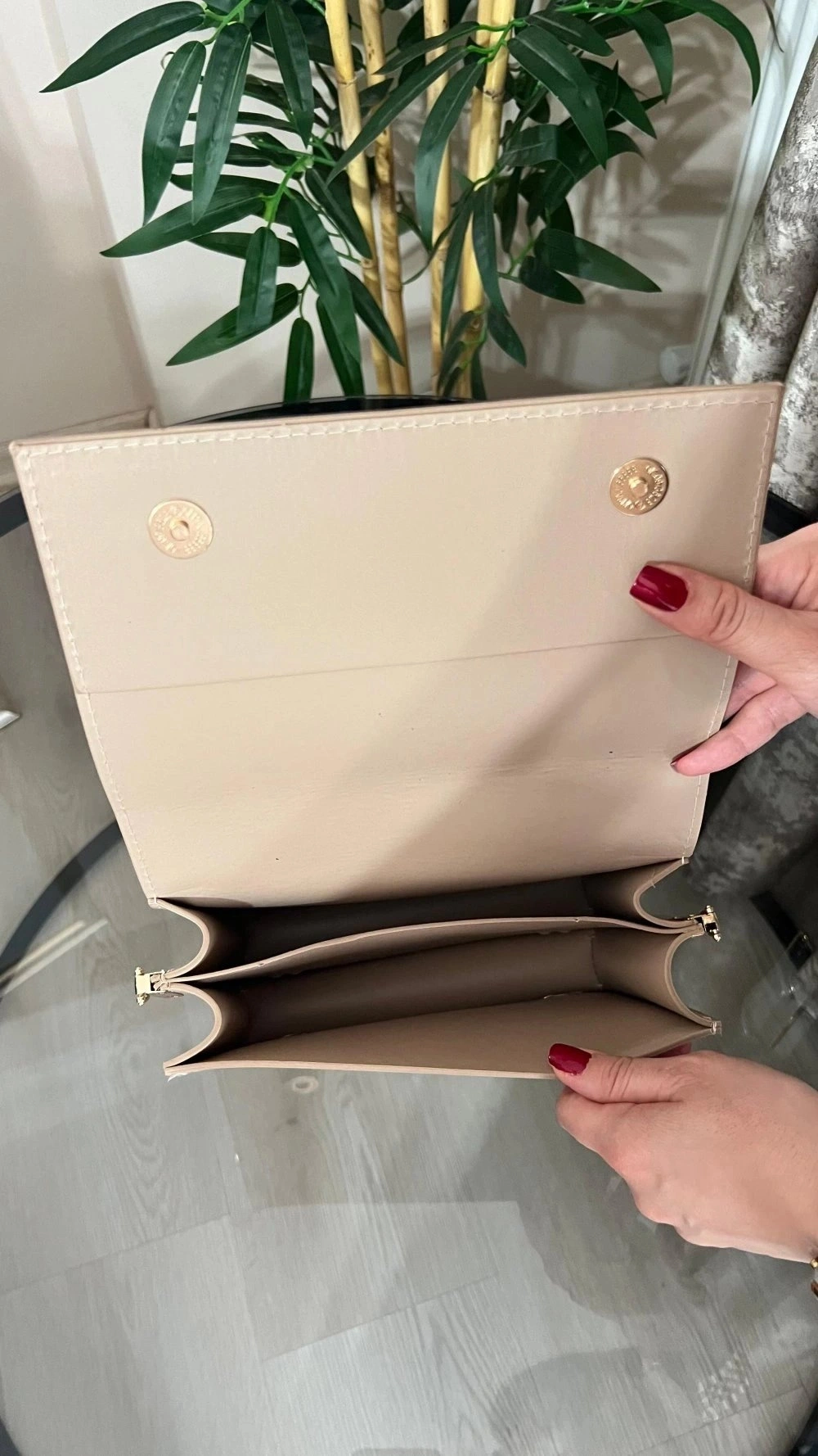 Karmin Model Bej Renk Deri Kol Çantası