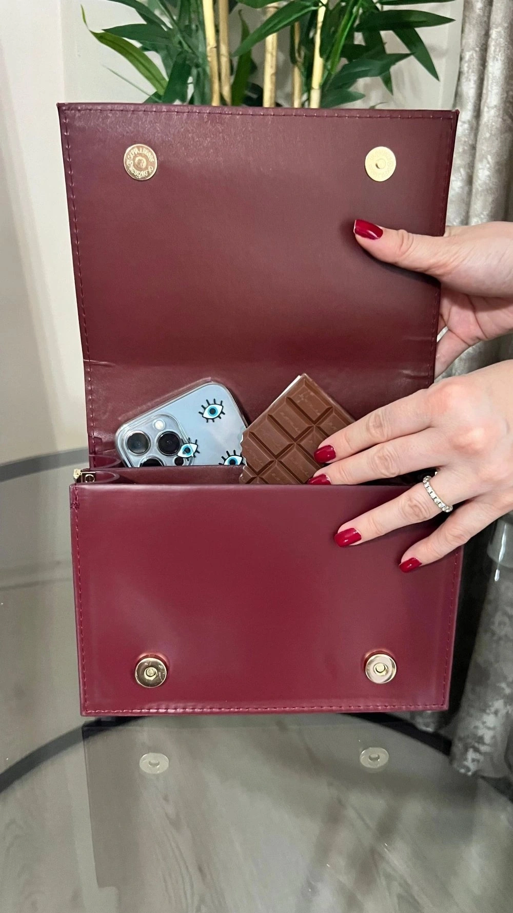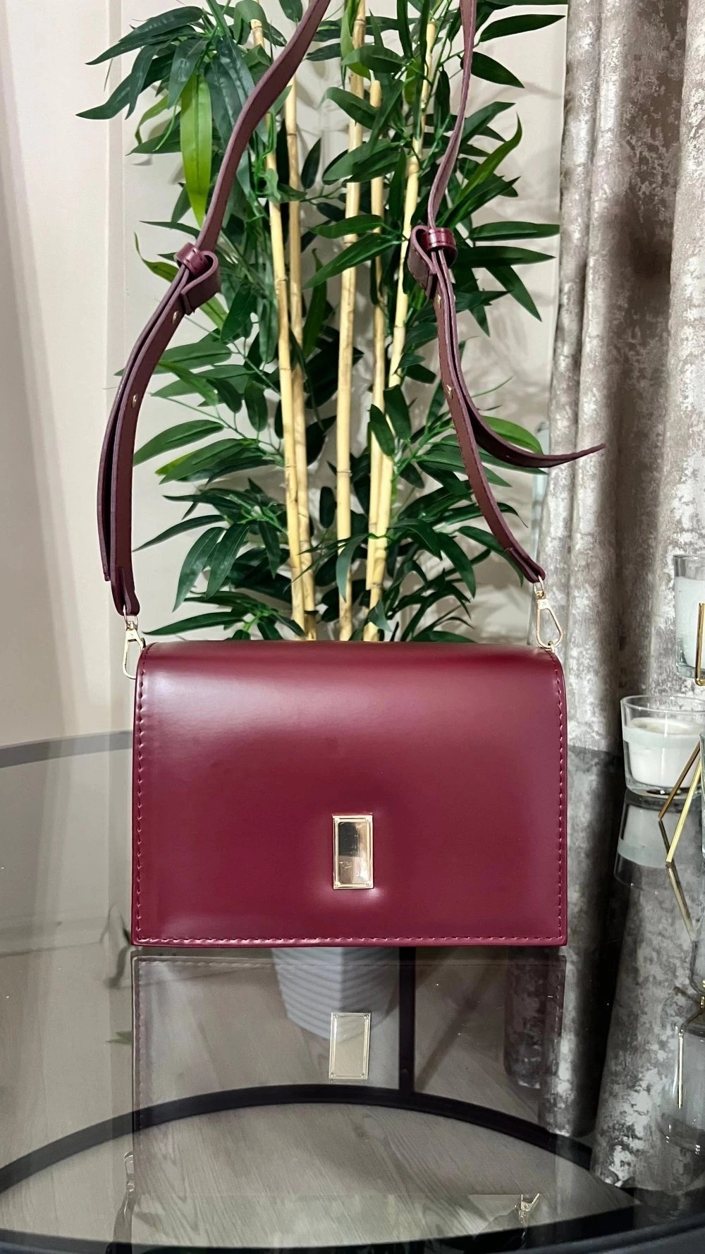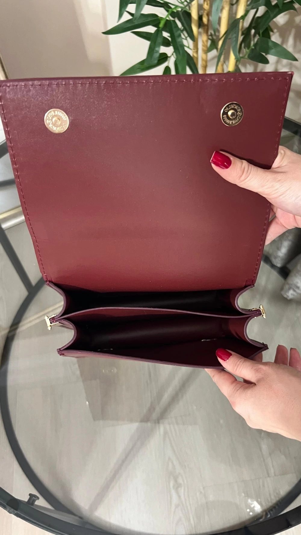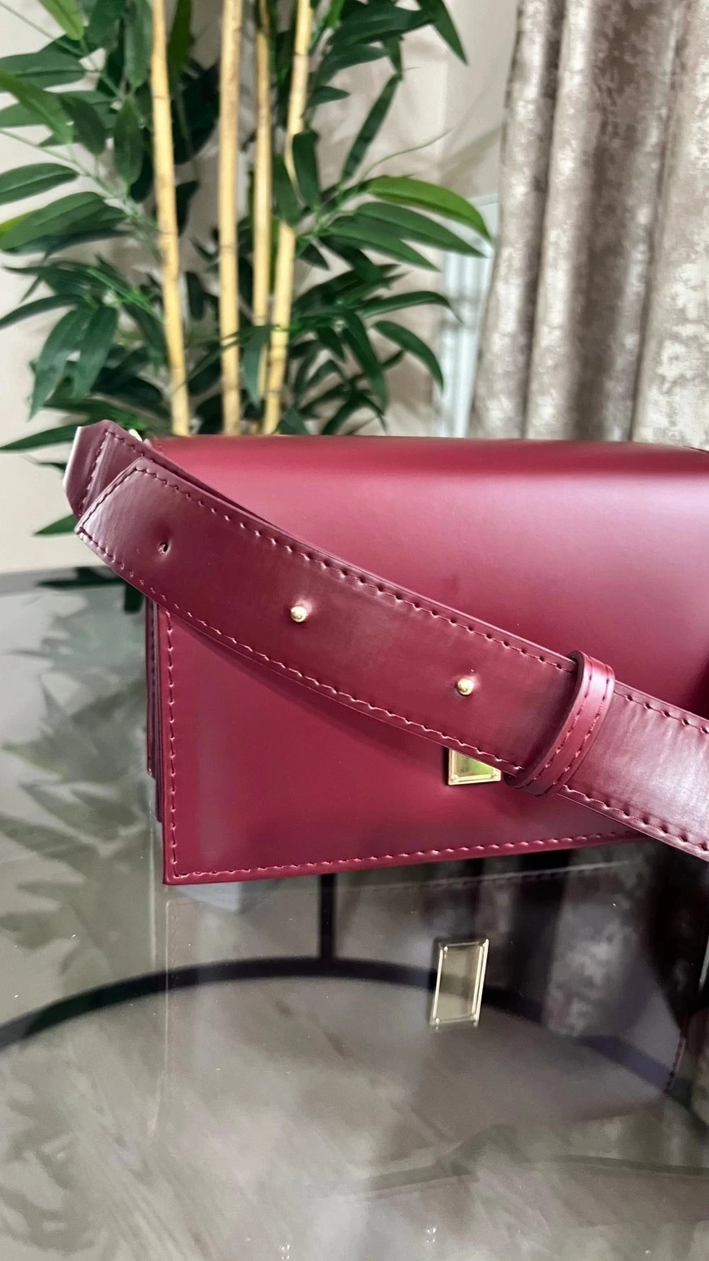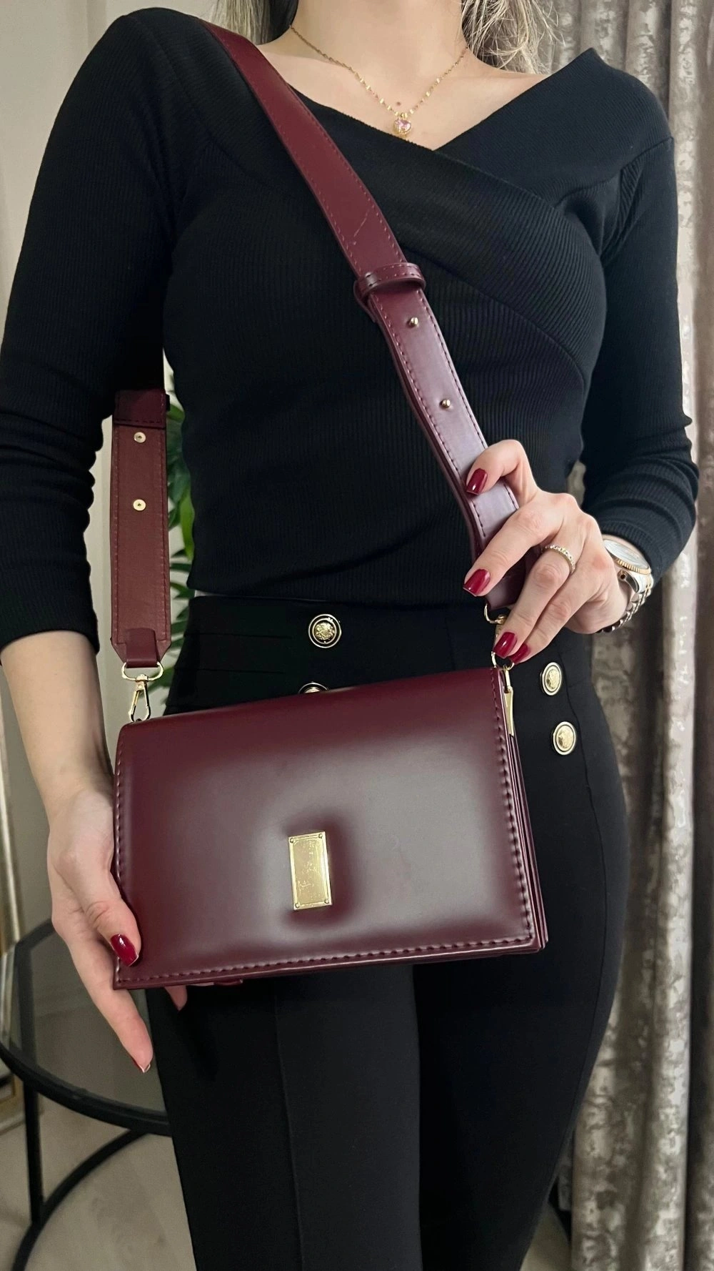 Karmin Model Bordo Renk Deri Kol Çantası