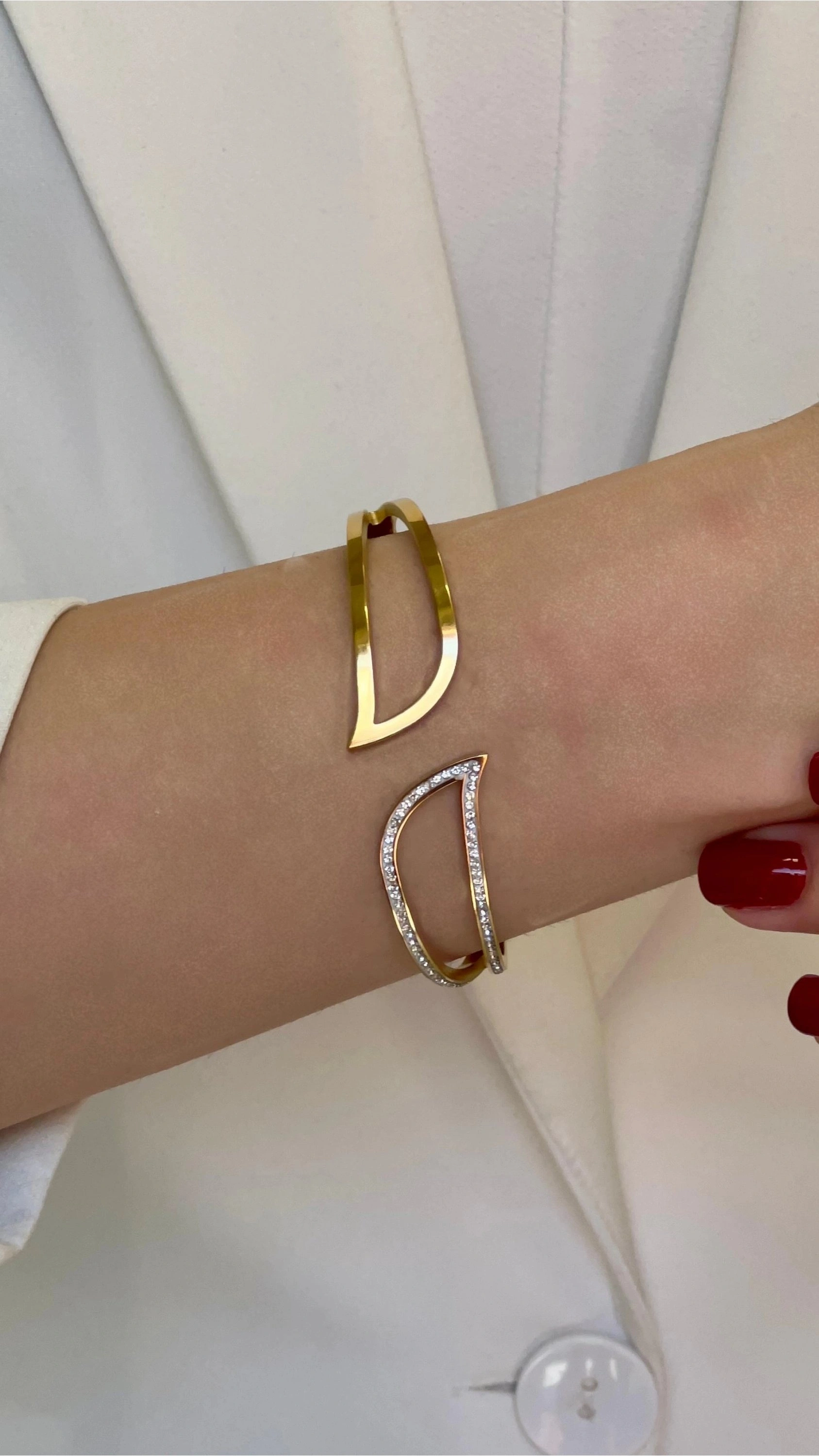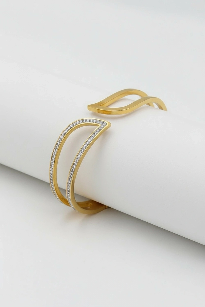 Kesik Yaprak Taş Detay Gold Altın Kaplama Bileklik