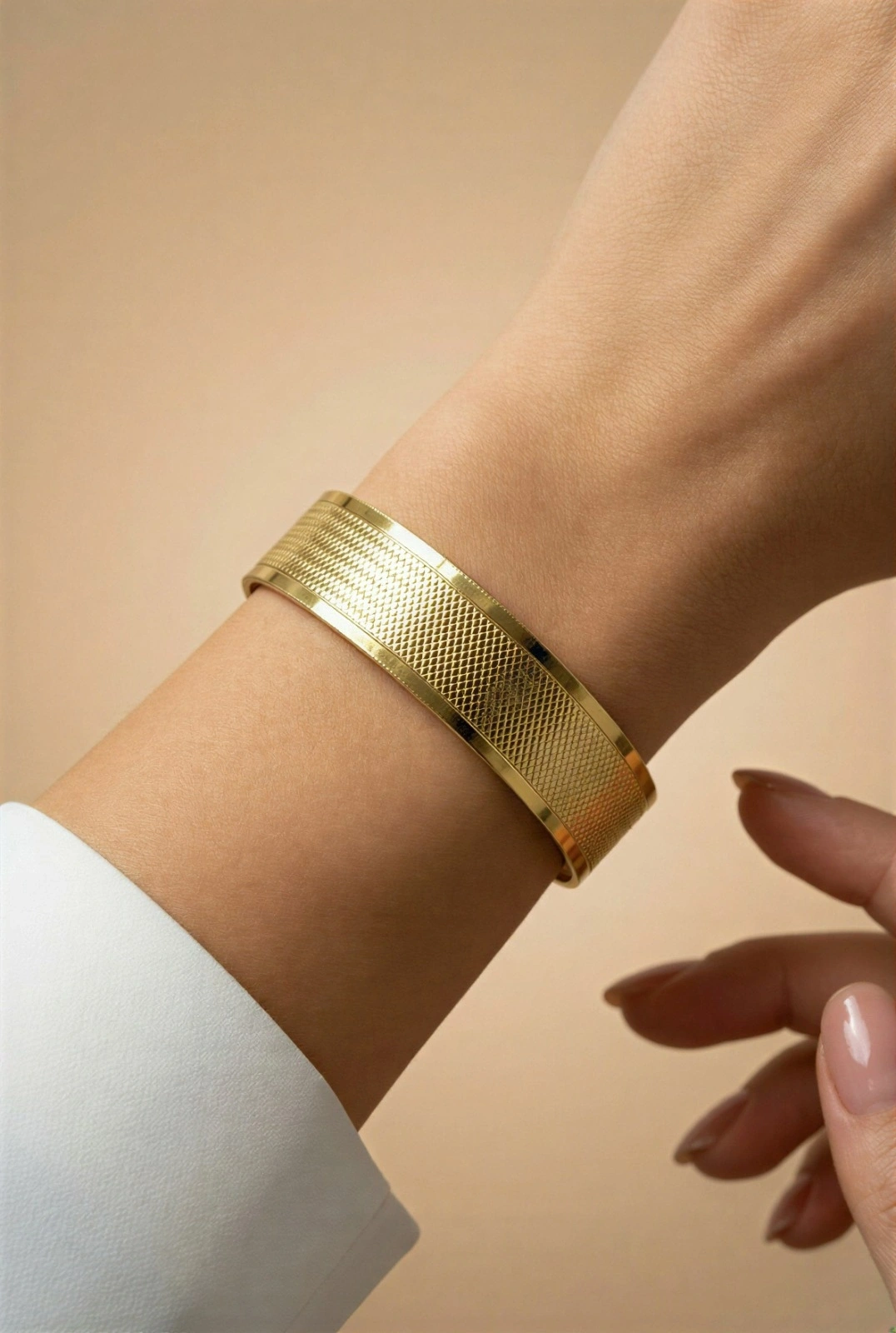 Kesme Model Desenli Gold Altın Kaplama Kelepçe
