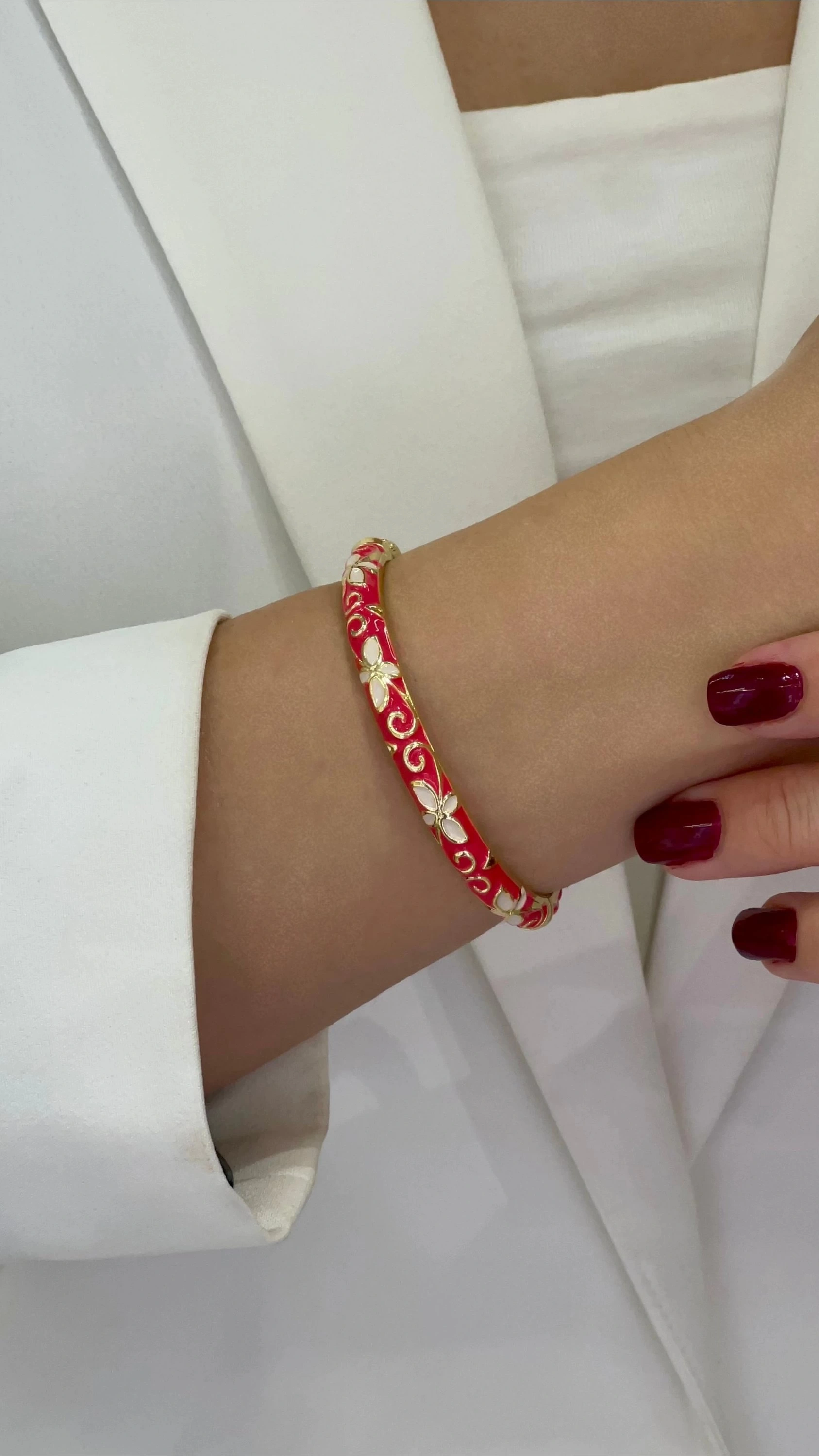 Kırmızı Beyaz Renk Mineli Model Altın Kaplama Bileklik