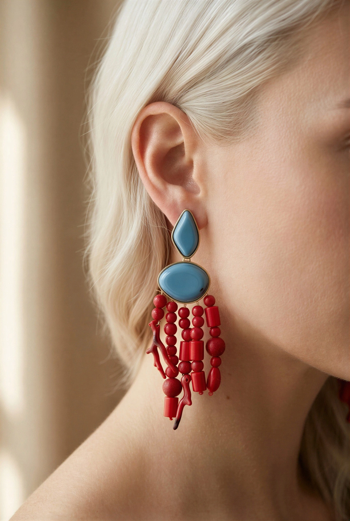 Kırmızı Sarkıt Boncuk Model Gold Altın Kaplama Küpe