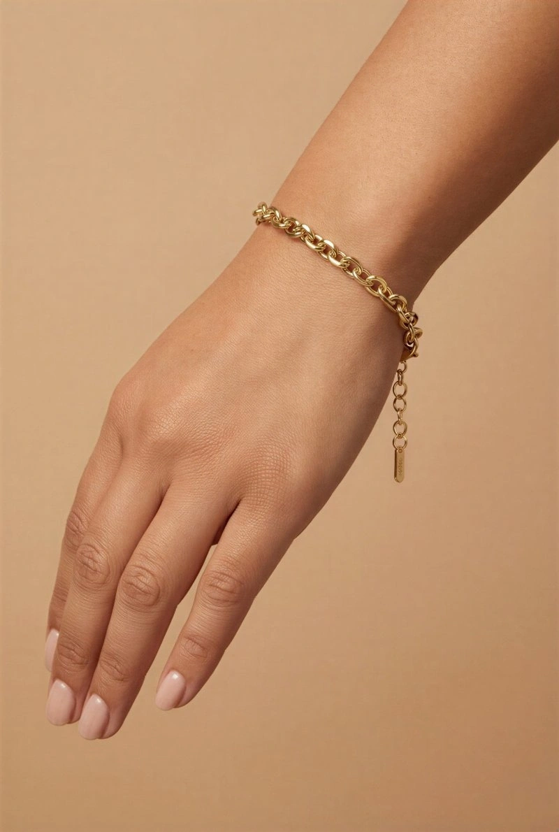 Köşeli Halka Geçiş Gold Altın Kaplama Bileklik