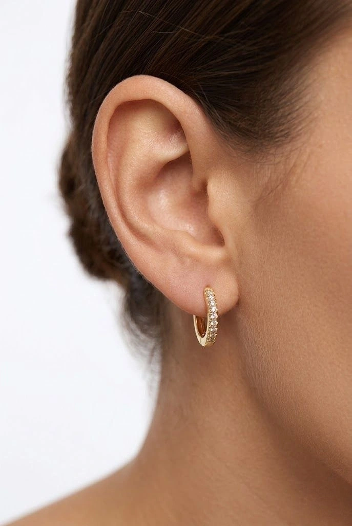 Küçük Taşlı Model Gold Altın Kaplama Küpe