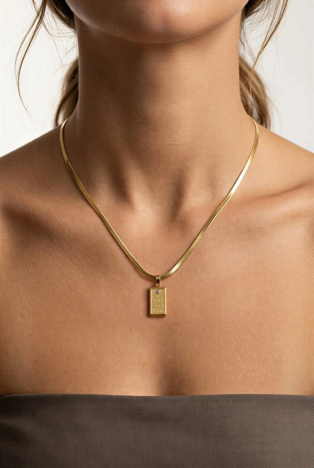 Külçe Altın Model Gold Altın Kaplama İtalyan Kolye
