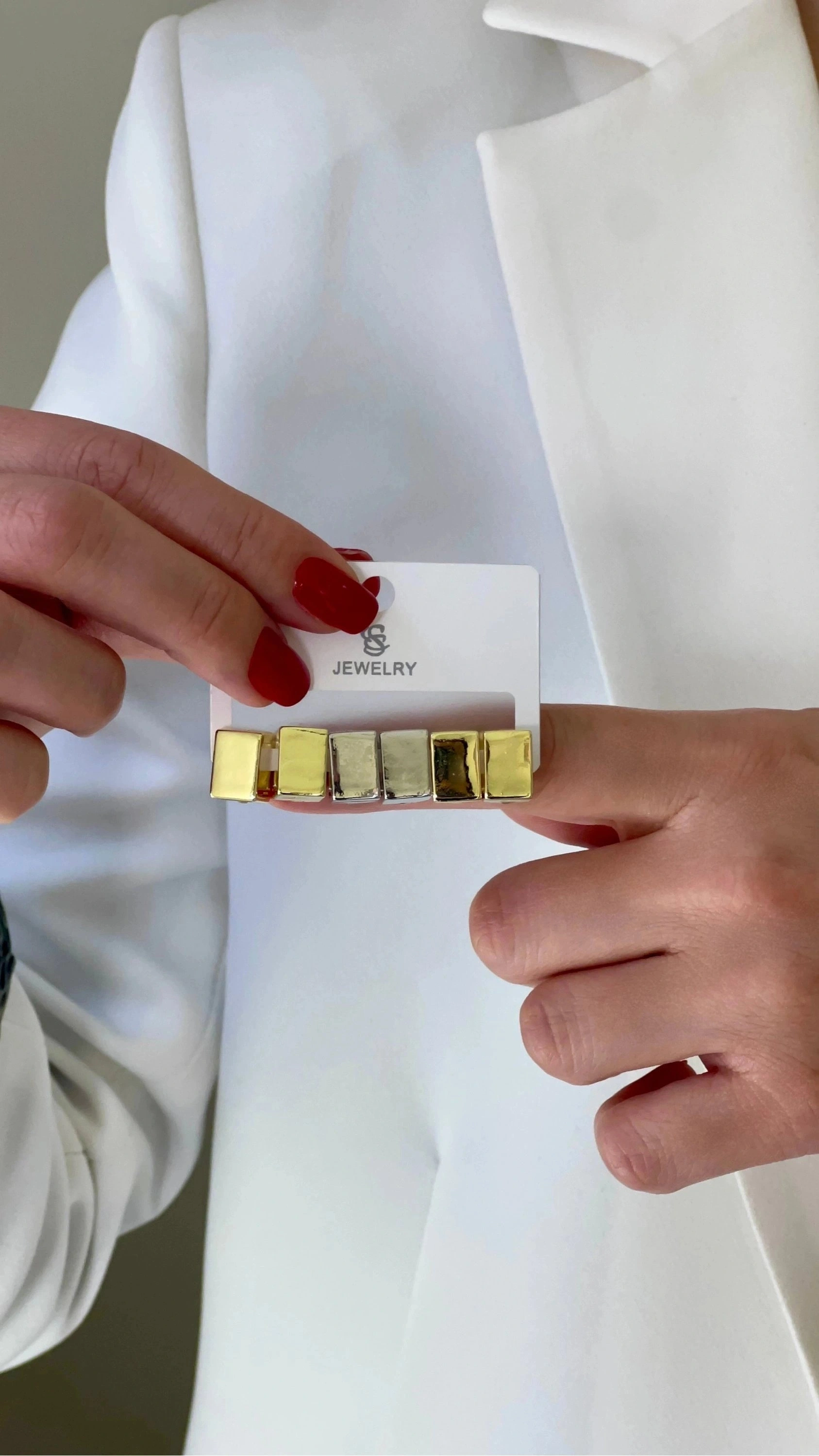 Külçe Model Altılı Gold Altın Kaplama Çoklu Küpe