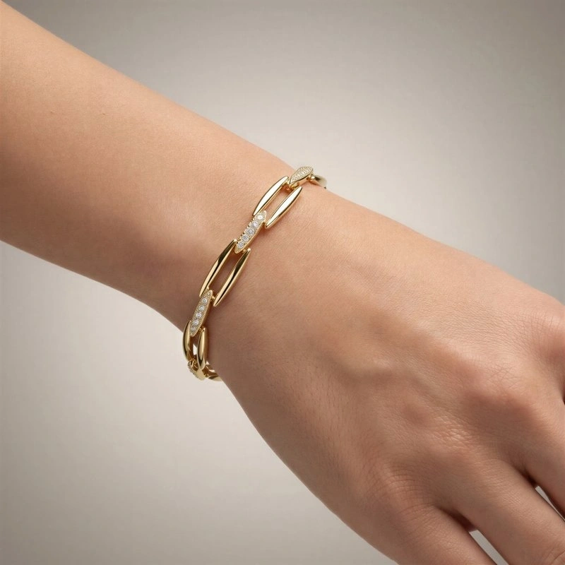 Kürdan Model Taş Detay Gold Altın Kaplama Bileklik