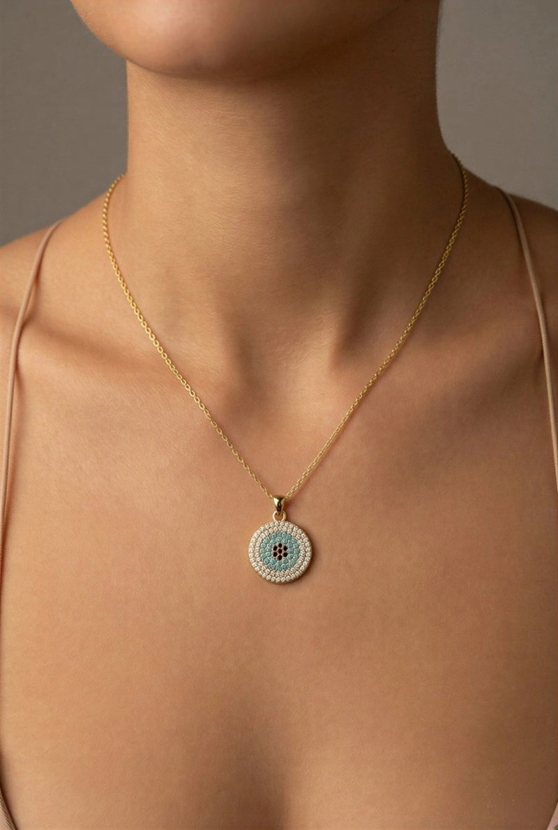 Mavi Göze Model Zarif Gold Altın Kaplama Kolye