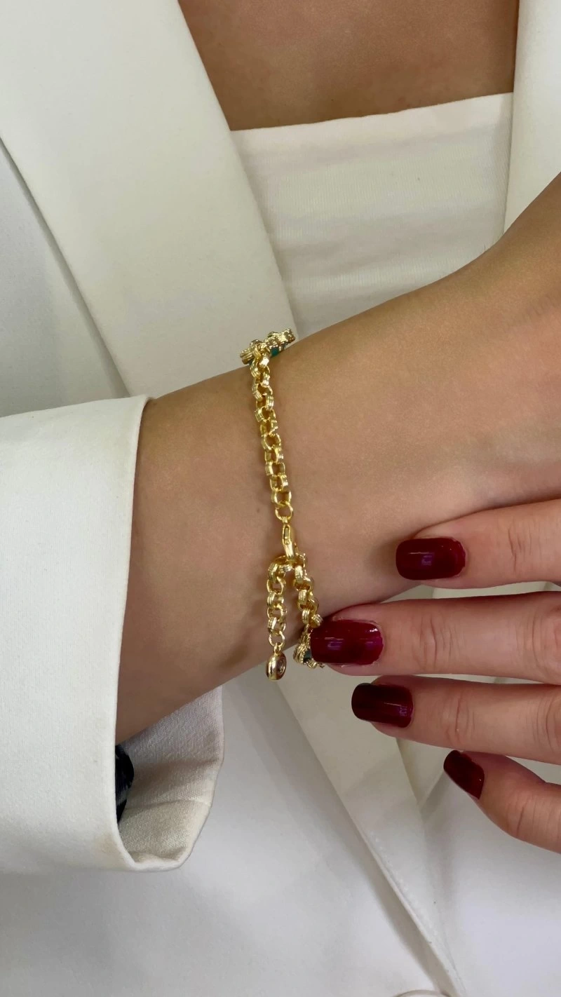 Mavi Renk Detay Yonca Model Gold Altın Kaplama Bileklik