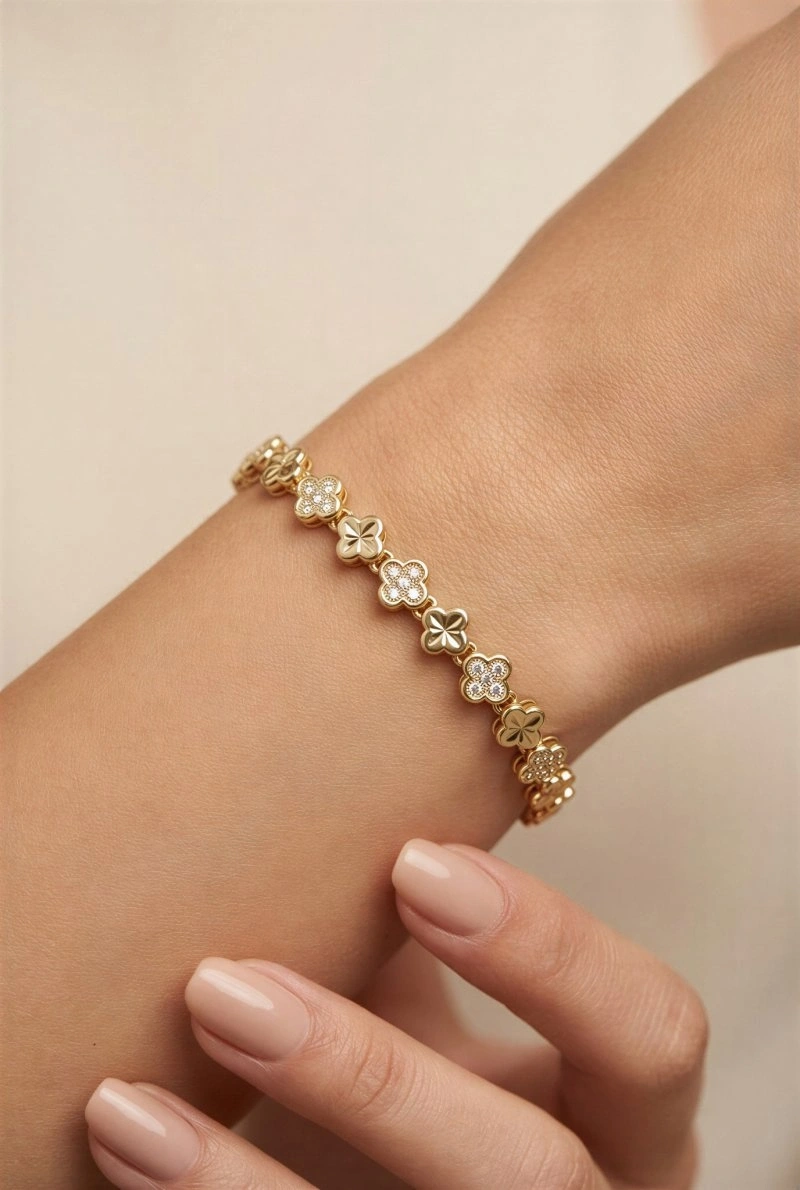 Minimal Yonca Model Taş Detay Gold Altın Kaplama Bileklik