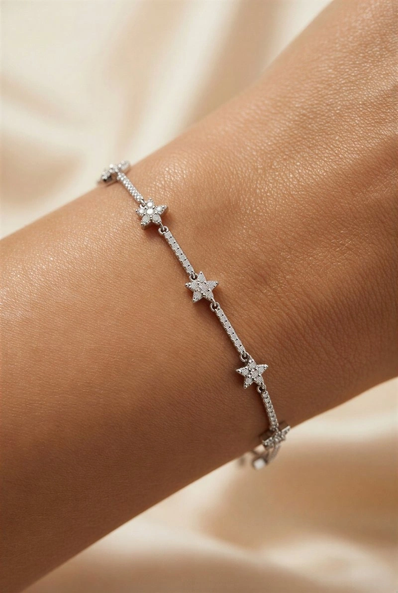 Minik Yıldız Model Beyaz Altın Kaplama Bileklik
