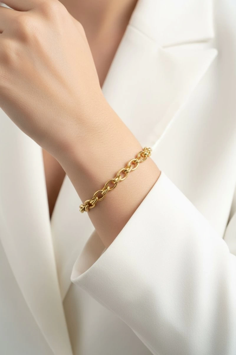 Olimpos Zincir Çift Geçiş Detay Gold Altın Kaplama Bileklik